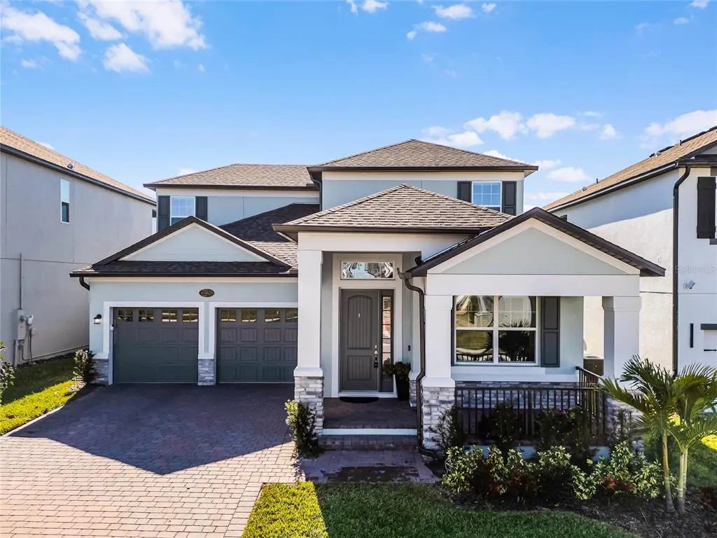 This barely 1-year-old, two-story home combines modern luxury with thoughtful design. The primary suite is conveniently located on the first floor, complete with tray ceiling and two large walk in closets and a spa-like bathroom. Luxury vinyl plank (LVP) flooring flows throughout the main living areas. Entertain with ease in the formal dining room or the gourmet kitchen, which boasts a large island, stunning pendant lighting, quartz countertops, light gray cabinets with contrasting dark hardware, a stainless vent, and a gas cooktop. A striking backsplash adds the perfect finishing touch. Additional recessed lighting and tall ceilings with 8' doors enhance the home's airy, elegant ambiance. The first floor also includes a laundry room with a sink, washer, and dryer with pedestals included. Step outside to the large screened-in lanai, perfect for relaxing or entertaining. The garage has built in hanging storage and the whole house water filtration system is an added bonus. Upstairs, you'll find an en-suite bedroom ideal for guests, two additional bedrooms, and a spacious bonus room that opens to a screened-in balcony. Enjoy breathtaking views of two ponds and the surrounding conservation area. The private backyard, fenced on two sides, offers additional privacy and serenity. Community Amenities Include: Fitness center, Resort-style pool, Outdoor gathering area with a spacious covered patio Clubhouse with a kitchen, Dog park, Shaded picnic tables with water views. Built-in cornhole and bocce ball areas. Playground and Outdoor fitness equipment along the scenic trail. This home is a rare find, combining stunning interiors, unbeatable views, and access to resort-style amenities. Don’t miss your chance to live in one of Horizon West’s most desirable communities! WELCOME HOME!