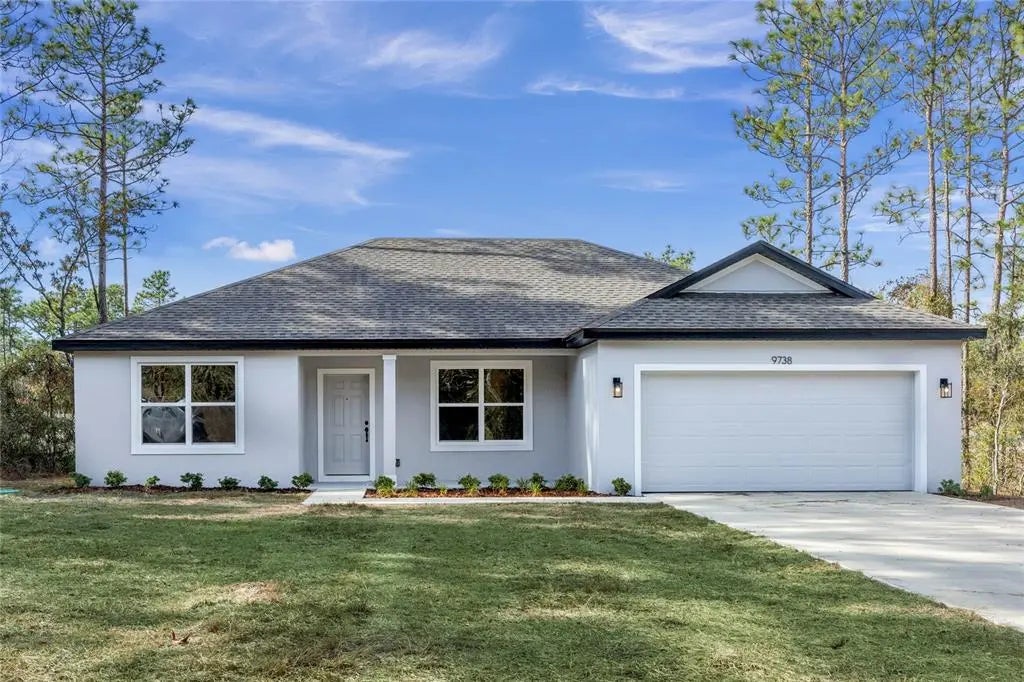 2024 NEW BUILD, this custom updated Jordan Model from Commence has 3 Bedrooms 2 Bathrooms + Full 2 Car Garage + 0.23 Acres with 1,450+ square feet of living space in Citrus Springs. This brand new home features an open concept split plan home with beautiful finishes throughout. The kitchen is complete with Quartz countertops, tile backsplash, crown molding with staggered gray cabinets, black hardware and faucet, oversized pantry, and large kitchen island with bar top seating. The kitchen opens to the living room area with tons of natural light. The primary bedroom has a tray ceiling, large walk-in closet and views of the property out of the rear windows. The primary bathroom has a custom quartz topped dual vanity topped with black hardware, along with a walk in glass shower enclosure with floor to ceiling tile. On the opposite side of the home are the two bedrooms separated by another bathroom finished with similar upgrades. The laundry room has a Brand New Washer & Dryer. This new construction home has Luxury Vinyl Plank flooring throughout! The Builder Preferred LENDER IS OFFERING 1% OF PURCHASE PRICE TOWARDS BUYER’S CLOSING COSTS! Call to make an appointment to see this home today!