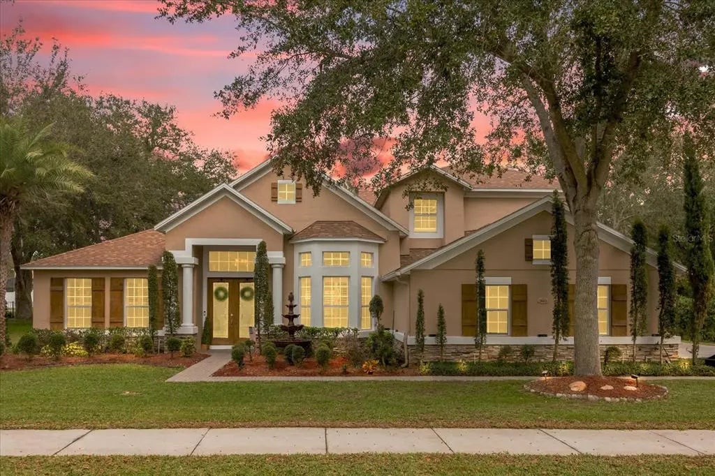 Welcome to your dream home!!!! Located in the heart of Apopka on a sprawling lot just under half an acre, this stunning four-bedroom, four-bathroom masterpiece is a true sanctuary designed for luxury living and entertaining. From the moment you arrive, the long, expansive driveway and elegant three-car garage set the stage for what awaits inside. As you step through the front door, you're greeted by a grand foyer flanked by formal living and dining areas adorned with stately pillars, exuding sophistication and charm. The master bedroom is a private retreat on the main floor, boasting high tray ceilings, French doors leading to the backyard, and spa-like amenities. With his-and-hers closets, dual vanities, a garden tub, and a spacious walk-in shower, you'll feel as though you've stepped into your own private oasis.The heart of this home is its breathtaking kitchen, designed for culinary enthusiasts. Featuring exotic granite countertops, stainless steel appliances, a Wolf oven, a large island, and an abundance of cabinet and pantry space, this kitchen truly has it all. The adjacent breakfast nook, framed by three stunning frameless windows, fills the space with natural light and offers serene views of the pool area. The split floor plan ensures privacy, with family or guest bedrooms on one side of the home and peace and quiet for the master suite on the other. The spacious living room, complete with a cozy fireplace and tray ceilings, opens seamlessly to the outdoor patio through a three-panel sliding door, inviting you to enjoy Florida’s perfect winter evenings.The second floor offers a flexible living space ideal for an in-law suite complete with a full bathroom and a fully equipped movie theater for unforgettable family movie nights. Step into your oversized backyard and be transported to a resort-style haven. The heated pool and spa, surrounded by pavers, are perfect for year-round enjoyment. Entertain in style with the permanent steel-roofed gazebo, outdoor kitchen, and large lanai—all designed for effortless hosting. This home is truly move-in ready, with fresh paint, brand-new ceiling fans, plantation shutters, exotic granite countertops, laminate floors upstairs, and a newer roof. Located in a gated neighborhood with sidewalks and easy access to SR 429, shopping, parks, and more, this home combines convenience with security. Don’t miss your chance to own this pristine, turn-key home that offers everything you’ve ever dreamed of—and more. Schedule your private tour today and experience the elegance, functionality, and unparalleled features of this exceptional property!
