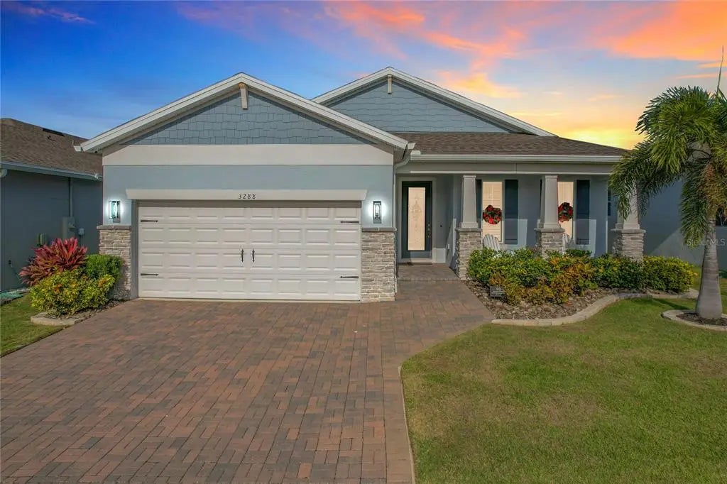 Welcome to this stunning 3-bedroom, 2-bathroom home located in the highly sought-after gated community of Lakeview Preserve. The home's exterior boasts a beautiful stone entry with a front porch and natural landscape. Stepping through the glass entry door you'll see a featured stone wall and a formal living room/office. Step into the spacious open-concept living area, where you'll find gorgeous quartz countertops paired with sleek stainless steel appliances and a large kitchen island—perfect for cooking and entertaining. The master bedroom is a true retreat, complete with an updated walk-in closet that offers built-in storage for an organized, luxurious experience. Step outside to the screened rear patio, which features an extended brick paver area ideal for outdoor entertaining or relaxation with mature fruit trees and landscaping. The extended 4' garage provides ample space for both vehicles and storage, featuring professionally installed epoxy flooring and overhead storage racks for added convenience. The community offers fantastic amenities, including a walk-in community pool, playground, and splash pad with a sun shade, making it perfect for family fun and relaxation. This home is nestled in a family-friendly neighborhood with excellent access to nearby schools, shopping, and dining. This home is under warranty with the builders 10yr transferrable warranty. Don't miss your chance to make this beautiful home your own—call today to schedule a showing!