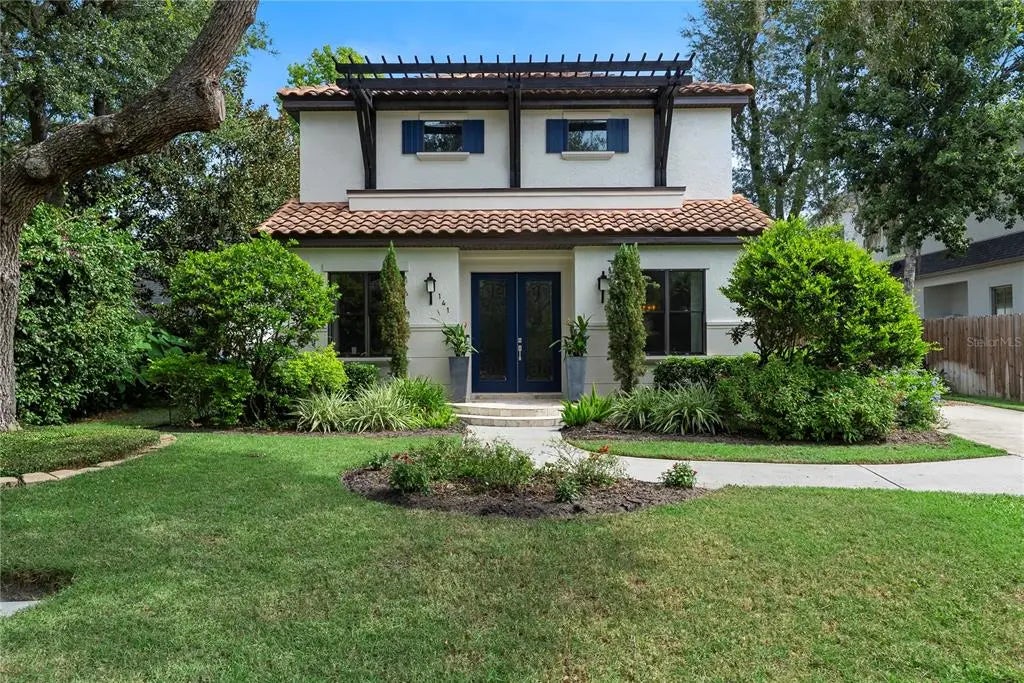 Welcome to 141 Oakwood Way, a one-of-a-kind custom-built estate in the highly desirable south Winter Park/Lake Sue area. This modern Mediterranean-inspired residence seamlessly blends timeless elegance with contemporary luxury, offering an exceptional living experience with high-end finishes, thoughtfully designed spaces, and unmatched attention to detail. Step inside to whitewashed oak wood and travertine flooring, setting the tone for a warm and sophisticated ambiance. The open floor plan begins with a private front office, ideal for remote work, and a guest suite with a full bath—perfect for visitors or multi-generational living. The first-floor primary suite serves as a private retreat, featuring direct access to the patio for a peaceful outdoor escape. The spa-like en-suite bathroom boasts dual vanities, a walk-in shower, and a freestanding soaking tub, while the custom-built walk-in closet offers elegant storage solutions. Thoughtful details, like built-in wiring for a wall-mounted TV, enhance both convenience and luxury. At the heart of the home is the gourmet kitchen, designed to impress with a solid walnut breakfast bar, quartzite, Carrara, and travertine countertops, Grohe faucets, and custom pullout/swivel cabinetry. A hidden pantry blends seamlessly into the custom cabinetry, while top-tier Thermador gas appliances, including a 42” refrigerator, make cooking a breeze. Flowing effortlessly into the family room and private courtyard, this space is perfect for entertaining. Upstairs, you'll find stunning Venetian plaster walls and a modern glass stair railing leading to a versatile loft space. Three additional bedrooms are located on this level, each featuring custom-built walk-in closets for optimal organization. One of the upstairs bedrooms includes a private en-suite, while the bonus loft opens to a covered balcony through elegant French doors, providing a tranquil indoor-outdoor retreat. Plush new carpeting in the bedrooms enhances the comfort and style of the upper level. Designed for seamless outdoor living, this home features a custom-built gas fire pit, summer kitchen, and outdoor grill, making it perfect for year-round entertaining. The expansive upstairs balcony offers additional entertainment space, large enough for a ping pong table, outdoor lounge, or media area. A two-car rear side-entry garage, connected to the main house by a charming esplanade walkway, offers both privacy and convenience while enhancing the home’s architectural beauty. The freshly painted exterior adds to the home’s pristine appeal, making it truly move-in ready. Located within one of Winter Park’s most desired school districts, this home is zoned for Audubon K-8 and Winter Park High School. Plus, you’re just minutes from East End Market and Park Avenue, with the area's finest dining, shopping, and cultural attractions. This is more than a home—it’s an expression of refined living and timeless design. Schedule your private tour today!