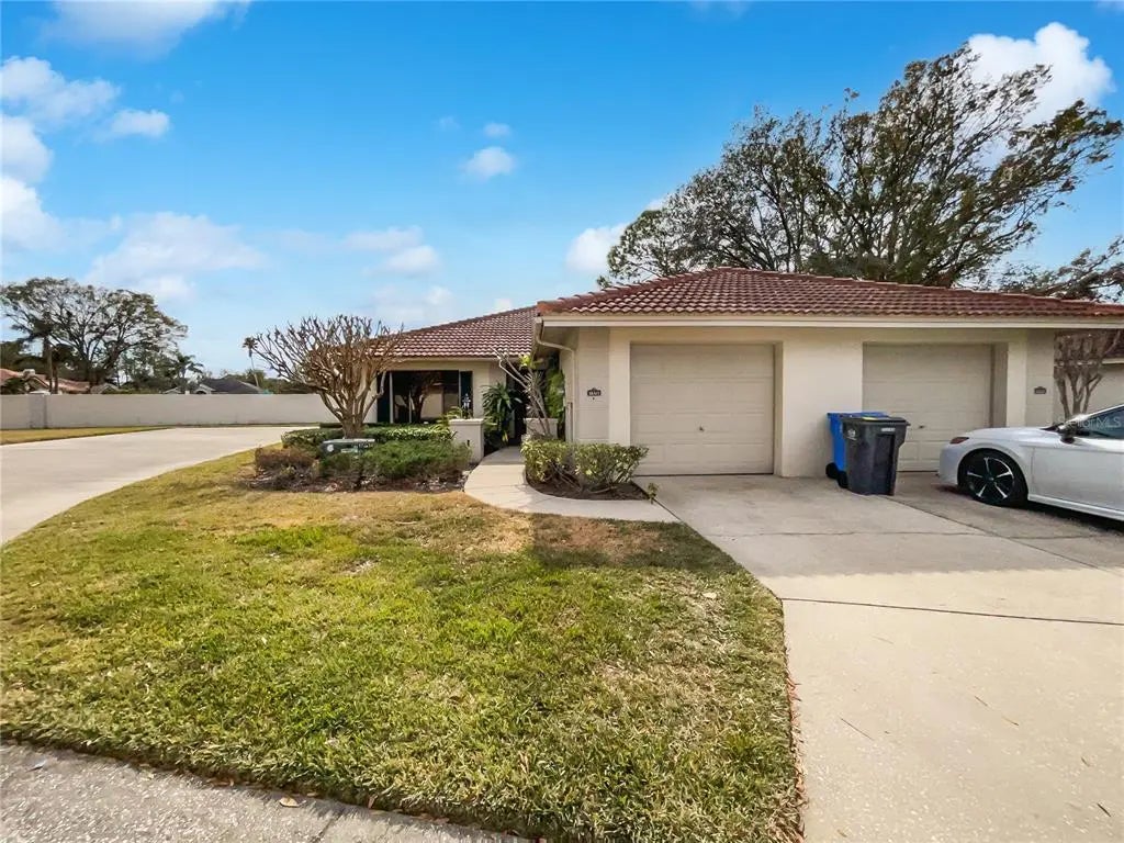 Welcome to this charming, maintenance-free villa, ideally located in the heart of New Tampa, just a short drive from all the essentials. Step inside and immediately notice the meticulous care this home has received. The spacious eat-in kitchen offers ample counter space, abundant cabinetry, and a breakfast bar that seamlessly connects to the open-concept living and dining area—perfect for entertaining and easy meal service. The dining and living rooms feature mirrored accents, creating a bright and airy atmosphere, while sliding doors lead to the inviting lanai. You'll love the lanai, transformed into an all-season retreat with windows, screens, tile flooring, and a door opening to the peaceful green space behind the home. Designed with privacy in mind, this villa boasts a split-bedroom layout. The primary suite, located at the back of the home, features large windows overlooking the serene green space, a generous walk-in closet, and an ensuite bath with an expansive vanity, abundant storage, and a walk-in shower. The second bedroom, situated at the front of the home, is bright and spacious with a large closet. A conveniently located hall bath and in-unit laundry complete the layout. Nestled in a welcoming community, this villa offers easy access to grocery stores, top-rated schools, hospitals, major highways, and more. Ample guest parking is available right in front of the villa. Best of all, your monthly fees cover essential services, including dwelling insurance, landscaping, basic cable, roof and exterior maintenance (excluding screens and gutters), and painting—ensuring a hassle-free lifestyle. Don’t miss this wonderful opportunity—schedule your showing today! Seller is willing to cover up to six (6) months of buyer’s Homeowners Association (HOA) dues with an acceptable offer
