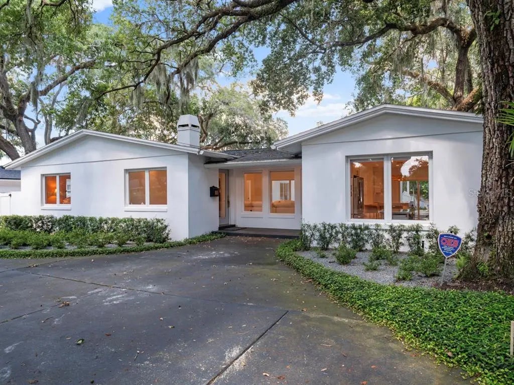 Luxury is a lifestyle, and this Winter Park modern bungalow on a cobblestone street is full of natural light, clean lines and crisp open spaces. Three bedrooms and 2.5 baths in the main house, this home has been thoughtfully renovated with style and beckons the green of an outdoor lifestyle. Over 2,400 square feet in main house and the garage was converted to an additional dwelling unit, adding an additional 400 square feet or so, current use is a studio, can easily transform to a guest house, mother-in-law suite or back to a garage, whatever function fits your needs. Front motor court can accommodate lots of vehicles, easy in and out and includes electric car charging station. The kitchen is open to the gathering room with spacious volume ceilings. Home was recently renovated with stainless appliances, including a Thermador gas range, clean-line cabinets with glass door accents, Cambria Gold quartz countertops, counter seating, a farmhouse sink and gorgeous window to the outside. Main living space is anchored by warm wood floors, with marble floors in bedrooms, all generous in size, with fresh light walls and an extensive lighting package throughout. All baths are updated with marble-influenced accents and gold finishes. Primary suite enjoys sleek authentic Carrera marble seamlessly throughout with walk-in closet for great organization. A luxurious bath retreat showcases a soaking tub, dual sinks and a chic open shower with a frosted window. The natural light in this home adds to the beauty in all spaces. Glass slider doors invite you to the outdoor oasis with an expansive covered pergola, cover is waterproof with the Hercules roof system. Lush greenery and mature landscape and majestic oaks round out the space and topped off with an upscale bar for making entertainment simple. This home was extensively renovated including roof and gutters, re-pipe, newer air conditioners, electrical panels, gas tankless water heater, parking motor court, professional landscape and landscape lighting, the additional separate studio recently updated, paved courtyard, bistro lighting and more. Location is paramount near Winter Park Racquet Club, terrific schools, zoned for Winter Park High, close to Park Avenue, fantastic shopping and restaurants. A great investment opportunity to live among the finest homes in Winter Park and in well-established neighborhood providing a lifestyle like no other.