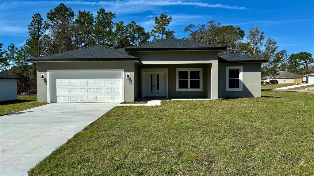 New Home in Citrus Springs – Comfort, Style, and Ample Space on a Large Corner Lot! This newly built home is perfect for those looking for a modern, functional space with plenty of room to enjoy. Situated on a spacious 0.33-acre corner lot, this property offers privacy, versatility, and great outdoor potential. Inside, you'll find 3 spacious bedrooms, including a stunning master suite with a walk-in closet, and 2 bathrooms featuring contemporary finishes for maximum comfort and privacy. The open floor plan seamlessly connects the living spaces, creating an ideal environment for entertaining and daily relaxation. High-quality laminate flooring enhances the elegant and cozy design. The fully equipped kitchen boasts modern, high-end appliances, making it the perfect hub for preparing your favorite meals and sharing special moments with family and friends. Additionally, the home includes an inviting front porch and a large lanai at the back, providing excellent outdoor space for leisure and relaxation. Practicality is a priority, with a 2-car garage and a separate laundry room ensuring organization in your daily routine. Located in one of the best areas of Citrus Springs, this home is close to schools, shops, and recreational options, making it a convenient and highly attractive choice. Don't miss this unique opportunity! Schedule your visit today and discover why this home is the perfect blend of space, comfort, and investment potential.