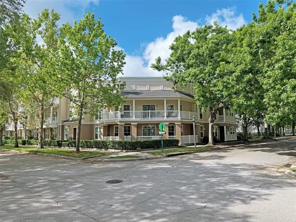 This beautiful corner unit on the first floor, with 2 bedrooms and 2 bathrooms, offers the perfect amount of charm, convenience and luxury. Situated on Water Street and Savannah Park, this home is within walking distance to the restaurants, stores and entertainment of Downtown Celebration. Step inside and experience the open floor plan, with a spacious living room with hardwood floors, dining room and the kitchen. The kitchen features modern stainless steel appliances, granite countertops and a breakfast. The master suite and additional bedroom offer ample space and comfort, This condominium is one of only two units in the community with a covered patio. Water Street residents have access to exclusive amenities, including a fitness room, concierge trash service at your door, business and social rooms, and private parking downtown. Celebration's schools have excellent ratings for students of all ages. This master-planned community offers parks, playgrounds, community pools, over 26 miles of scenic hiking and biking trails, and numerous dining and entertainment options. Located a short drive from Walt Disney World and other Central Florida attractions, this property is perfectly situated for both work and play.