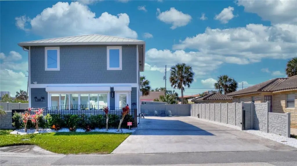 Newly built luxurious Beach House with RV parking. This ocean view home is an entertainer's dream with indoor/outdoor living at its best, featuring an RV pad with water, a clean out that can fit an impressive 45' RV. This is a must see. No expense was spared in constructing this optimal beach home featuring ICF construction, 4'' block concrete walls, 2'' spray foam insulation, metal roof, hurricane rated windows and doors, starboard cabinets, PVC shiplap walls, pebble flooring, dual zone AC/ heat, natural gas that powers the tankless hot water system and automatic hurricane shutters. This house has been constructed to withstand the worst of hurricanes. Enjoy the open concept main floor chef's kitchen featuring a HUGE island that seats twelve, a 48'' natural gas stove with dual electric oven and pot filler, dual beverage coolers, dual sinks, and undercounter commercial ice maker. A large living room offers a beautiful natural gas fireplace, wet bar with a wine fridge, and a half bathroom. Open up the expansive sliding doors to create an impressive indoor outdoor vibe. The shiplap walls and bright and airy colors throughout gives you a modern coastal feeling. The 2nd floor offers two primary bedrooms, each with their own ensuite bathroom, built in custom closet cabinetry and an ocean view balcony. The second floor also offers a laundry closet with stacked front load washer and dryer with built-in cabinets for storage, countertop for folding and a trash can for your lint and trash. The exterior is gated and fenced in and offers a true RV pad with water, a clean out and can fit an impressive 45' RV or just bring all of your cars and toys to keep safe beyond your private fence and keypad/remote driveway gate. Electric Hurricane shutters enclose the entire downstairs and upstairs balcony when needed. Directly across the street is the public walkway to the beach. All information is intended to be correct but should be verified by the buyer and buyers agent.