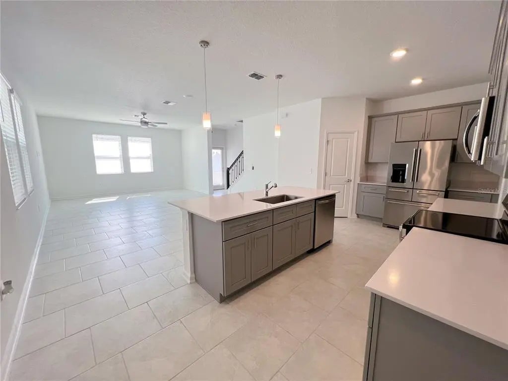 Welcome to 4154 Jespersen St, Apopka, FL 32712—a brand-new 3-bedroom, 2.5-bathroom home with 1,795 sq ft of modern living space. This home features a KitchenAid® gourmet refrigerator, a Samsung washer and dryer set in the downstairs laundry, and Hunter ceiling fans with lights in every room. All bedrooms are upstairs, including a master suite with a walk-in closet and dual-sink bathroom. Enjoy a cozy lanai and a detached two-car garage with a fresh epoxy-coated floor. For security and convenience, the home includes a Ring doorbell and a Schlage keyless entry lock. Rent is $2,585 , including free solar power, with tenants responsible for electricity costs after solar credits are applied, as well as water, cable, internet, and lawn services. Minimum 12-month lease. Don’t wait—contact now to schedule a tour!