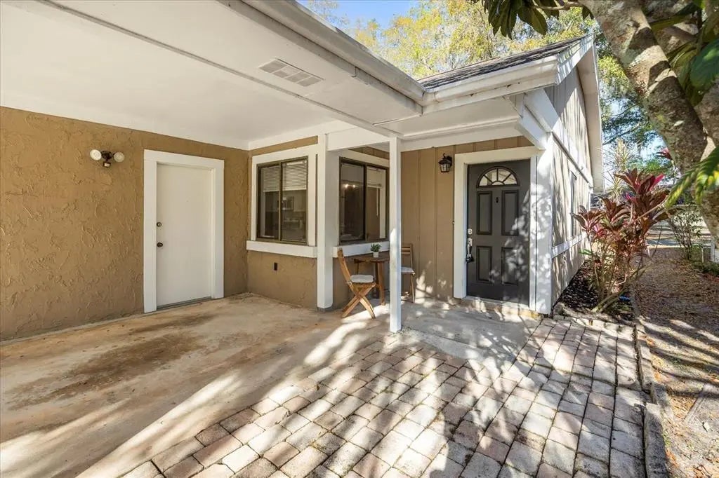 Welcome to this adorable 2-bedroom, 2-bathroom townhouse, offering a perfect blend of modern updates and cozy charm. With 1,166 square feet of living space, this fully updated, free-standing home provides both comfort and privacy, as it is not attached to any other properties. The open-concept layout fills the home with natural light, creating a bright and airy atmosphere throughout. High cathedral ceilings add a touch of elegance, enhancing the spacious feel of the living area, ideal for entertaining or simply relaxing. The kitchen is a standout feature, complete with sleek stainless steel appliances, gleaming granite countertops, and ample cabinet space for all your cooking needs. Whether you're preparing a casual meal or hosting guests, this beautiful kitchen provides both style and functionality. Adjacent to the living room, the home flows seamlessly, creating the perfect environment for modern living. Both bedrooms are generously sized, offering comfortable retreats with plenty of storage. Step outside and enjoy the tranquility of your exterior screened-in patio, an ideal space for outdoor dining or enjoying a peaceful evening. This townhome also includes a 1-car garage with an additional carport for convenience and extra parking. With all these incredible features, this home truly offers a wonderful opportunity to experience the perfect balance of style, comfort, and functionality in a charming neighborhood.