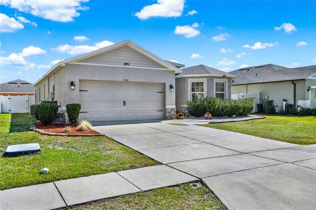 Welcome to 3086 Brenton Manor Loop, the space, comfort & value you’ve been searching for! Fall in love with this move in ready 3-bedroom, 2-bath home that truly checks all the boxes! Nestled in a peaceful, family friendly neighborhood with LOW HOA and NO CDD fees, this home delivers exceptional value with thoughtful upgrades, smart features, and plenty of room for your family to grow. Step inside and be greeted by a bright, open concept layout designed to bring your family together. The spacious living, dining, and kitchen areas flow effortlessly, ideal for movie nights, or casual mornings over coffee. The split-bedroom floor plan offers comfort and privacy for everyone, while the primary suite serves as your personal retreat, boasting a double vanity, oversized walk in shower, and a large walk in closet. Major upgrades have been taken care of for you, including: Brand-new roof (2024), New AC unit (2023), Smart home features, Ceiling fans throughout, LG Washer & Dryer, Garage door opener and spacious 2-car garage. Outside, enjoy your large patio, a fully fenced backyard, and even your own pineapple plants growing in the garden, perfect for family fun, pets, or weekend BBQs. Conveniently located just minutes from Highway 27, Legoland, shopping, dining, and schools, this home puts everything your family needs within easy reach. Whether you’re upsizing, relocating, or buying your first home, 3086 Brenton Manor Loop offers unbeatable space, upgrades, and value. Come see it in person and imagine your family’s next chapter here!