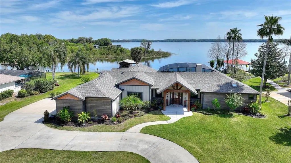 Welcome Home to this stunning Lake Beauclaire pool home, where outdoor living takes center stage. As you walk through the front door, you're immediately greeted by the breathtaking, expansive view of Lake Beauclaire, where shimmering waters and natural beauty create a serene and welcoming atmosphere. Enjoy the gentle breeze from the dual ceiling fans as you relax in the perfect blend of indoor comfort and outdoor splendor. Inside, the open living area is bathed in natural light, with sliding glass doors that pocket away for seamless indoor-outdoor living. The entire pool, summer kitchen, and outdoor dining area are fully screened, extending the home’s living space. A cozy stone fireplace with a stylish shiplap accent wall anchors the living room, complemented by luxury vinyl plank flooring and soft, neutral tones to accommodate any décor style. The chef’s kitchen is a dream, featuring a large quartz island, stainless steel appliances, a Thermador® induction cooktop, soft-close cabinetry, and an adjacent dining area with breathtaking views. The private owner's suite offers a serene retreat with pool and lake views, a spa-like ensuite bath with a massive custom shower, dual sandstone vanity, and a generous walk-in closet with ample shelving and drawers. Two additional guest rooms and a full bath are located on the opposite side of the home. One guest room doubles as a multi-functional space with lake views, a built-in desk and a queen-size Murphy bed. The two rooms are connected by a long walk in closet. Step outside to your own oasis—a sparkling private pool surrounded by brick pavers, covered patio, and a fully equipped outdoor kitchen that promise endless days of relaxation and entertaining with stunning views of the lake. Boating from your own backyard is a true luxury, with a custom boat dock equipped with an electric lift for a pontoon boat. Within minutes, you can set off to explore the Harris Chain of Lakes—including Apopka, Beauclaire, Carlton, Dora, Eustis, Harris, Little Harris, and Griffin—or navigate the scenic Dora Canal, Haines Creek, and Ocklawaha River. The 120' shoreline has an aluminum seawall that was installed in 2019. All of this luxury is situated on a spacious 0.74 acre lot. Featuring a circular driveway and an oversized entry for a grand welcome. The side-entrance garage includes an electric screen to let in the breeze, while an extended driveway provides additional parking. The front entry is adorned with durable Hardie Plank lap siding, a woodgrain fiberglass door. A remote-controlled screen allows for refreshing cross-breezes throughout the home. Lush tropical landscaping adds vibrant color around the property, and a fenced artificial turf area is perfect for play or pets. Residents of the Lake Beauclaire Subdivision enjoy a private boat storage area and a ramp conveniently located at the end of the neighborhood. Immaculate waterfront homes like this are rare. Don't miss your opportunity to live the Lake Life on the Harris Chain of Lakes. Schedule your private tour today and experience lakefront living at its finest!
