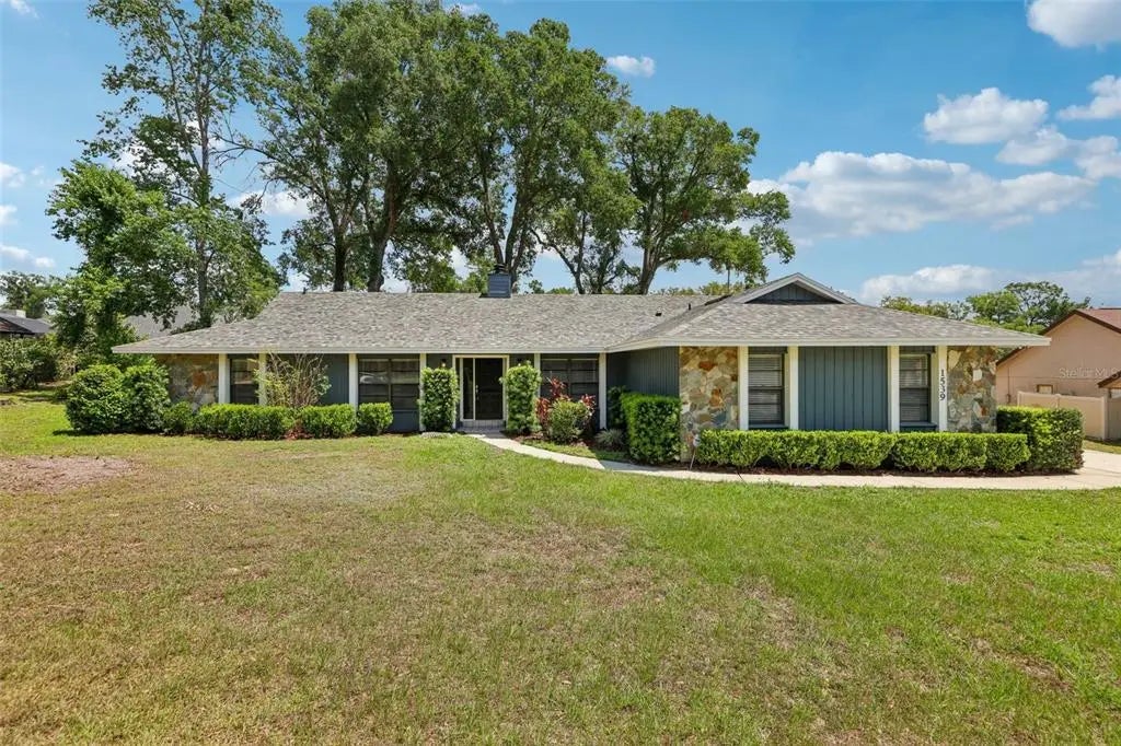 One or more photo(s) has been virtually staged. **Just Listed in the Highlands of Errol Estate!** Welcome to this beautifully updated home nestled on a quiet cul-de-sac street in the desirable Highlands of Errol Estate. Featuring 3 spacious bedrooms, 2 full bathrooms, a dedicated office, an oversized 2-car garage, and a huge screened-in porch, this home sits on an expansive, fully fenced lot with plenty of room to relax or entertain. Step inside and you’re greeted by soaring vaulted ceilings accented with striking black beams, illuminating skylights and a stunning wood-burning fireplace framed in natural flagstone, creating a warm and inviting great room. The entire 2,230 square feet of living space is finished with premium plank tile flooring, adding both style and durability. The heart of the home is the custom, open-concept kitchen, designed with modern touches including sleek black cabinetry, a dramatic 10-foot quartz waterfall island, and a matching quartz backsplash. Brand new stainless steel appliances and stylish pendant lighting complete this entertainer’s dream. The primary suite is generously sized and features a large walk-in closet with custom shelving. The spa-like primary bath offers a dual quartz vanity, new cabinetry, and a luxurious walk-in shower with custom tile work, glass enclosure and dual shower heads. On the opposite side of the home, you’ll find two additional oversized bedrooms and a beautifully updated guest bath with a newly tiled tub/shower combo and dual vanities with quartz countertops. The private office near the front entry is enclosed with large French doors and a pocket door—perfect for working from home or converting into a flex space. Out back, enjoy the massive screened and tiled lanai, complete with new ceiling fans, overlooking a serene and wooded backyard—ideal for relaxing evenings or weekend barbecues. Additional features and updates include: - Fresh interior and exterior paint - Updated lighting, fans, and fixtures throughout - Newer garage doors and openers - Refreshed landscaping and upgraded sprinkler system - Indoor laundry room with washer and dryer included - Whole-house central vacuum system - New roof in December, 2023. This home is truly move-in ready and full of thoughtful upgrades. Don’t miss your chance to own this gem in one of the area’s most sought-after neighborhoods!