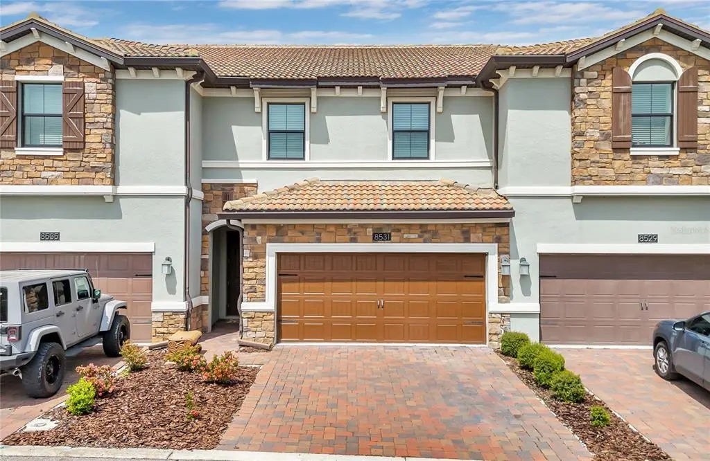 Charming Townhouse in Champions Gate - Just Minutes from Disney! Welcome to 8531 Couples St, a stunning townhouse nestled in the gated Champions Gate Community of Davenport, Florida. This beautiful 3-bedroom, 3-bathroom home offers 1,912 square feet of modern living space, perfect for families or those seeking a vacation property in a premium location. Step inside to discover an open floor plan with elegant white walnut wood-tone ceramic tile and recessed lighting throughout the first level. The gourmet kitchen is a chef's dream featuring quartz countertops, a spacious island, generous pantry, and quality appliances including a French door refrigerator and electric ceramic stove. Upstairs, the primary bedroom welcomes you with a sophisticated recessed tray ceiling and a walk-in closet that provides ample storage. The en suite bathroom boasts beautiful stone-look tile, a glass shower, double quartz vanities, a separate toilet room, and a luxurious soaking tub for ultimate relaxation. Two additional bedrooms offer comfortable living spaces with plenty of closet storage, while a second full bathroom continues the home's elegant design with stone-look tile and quartz countertops. The second-floor laundry room adds convenience to everyday living. Champions Gate Community delivers resort-style amenities including elite Greg Norman-designed golf courses and the Vistas Clubhouse with its heated pool, hot tub, and billiards room. The Oasis Club features air-conditioned cabanas, a large pool with lazy river, outdoor movie screen, and a fully equipped fitness center. The HOA fees include Spectrum cable TV, unlimited high-speed WiFi, home phone service, daily valet trash pickup, exterior maintenance, roof care, and landscaping. Located just minutes from Walt Disney World and other Orlando attractions, this townhouse offers the perfect blend of luxury living and vacation convenience.