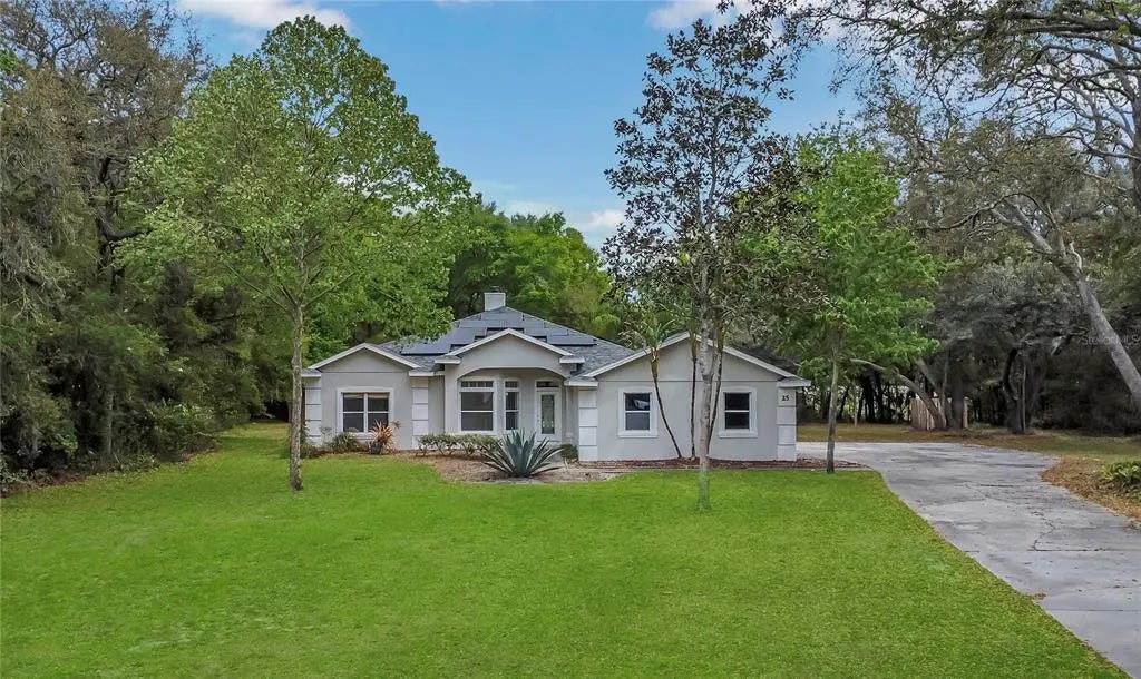 Welcome to 25 Dingo Place, a beautifully updated 4-bedroom, 2-bathroom pool home nestled in the highly sought-after Spring Hollow community of Apopka, Florida. Perfectly positioned on a spacious 2.4-acre cul-de-sac lot, this home offers the ideal blend of privacy, comfort, and convenience—with a low HOA and proximity to parks, schools, and major roadways. Step inside to discover a bright, open interior with new flooring throughout, fresh interior paint, and a cozy wood-burning fireplace anchoring the naturally lit living room. The thoughtfully designed layout includes a flex bedroom/office space and a laundry room that doubles as a walk-in pantry for added storage. The heart of the home, the kitchen, shines with high-end stainless steel appliances, granite countertops, a large sink, and ample space for cooking or entertaining. The spacious primary suite features direct access to the pool and a private en-suite bathroom—ideal for Florida indoor-outdoor living. Step outside to your resurfaced pool, new paver deck, and covered lanai, creating the perfect setting to entertain or unwind in your own private oasis. This home offers peace of mind with numerous updates including: newer roof (2020), solar panels (2021), updated well, new water heater (2024), Spray foam insulation and fresh exterior paint (2025). Located just minutes from Wekiwa Springs, Rock Springs Run, the Northwest Recreation Complex, and top-rated schools, with quick access to SR 429, this move-in-ready home offers the rare combination of space, upgrades, and location. Don’t miss your opportunity to own this peaceful retreat in one of Apopka’s most desirable neighborhoods.