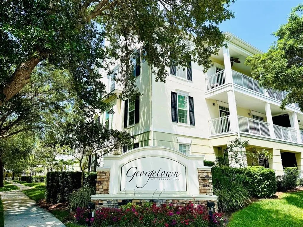 This 1 Bedroom, 1 Bath Renovated "McKinley" Condo is ready for you to call home! Desirable ground-floor unit. As you enter the foyer, you will greeted with an open floor plan flooded with tons of natural light and neutral colors. Open Living/Dining area with Tray Ceiling and Crown Molding. The living room has French doors that open to the outdoor patio. Master Bedroom also has French doors to the second covered patio. Large Walk-in Closet with conveniently located Washer/Dryer Closet. Clean, neutral kitchen and bath. Additional Office space between the Living Room and Bedroom that can also be used as a Den/Study. Great Location near the Georgetown Clubhouse, Pool, Fitness Center, Tennis Court, and Playground. There are multiple Car Charging Stations close to the unit, plus concierge Trash pickup at your door. Enjoy over 26 miles of walking/biking trails throughout the community. Downtown Celebration has multiple restaurants, banks, shops, and salons, plus a Farmer's Market every Sunday. Easy access to all the Walt Disney Theme Parks, Resorts, and Disney Springs.
