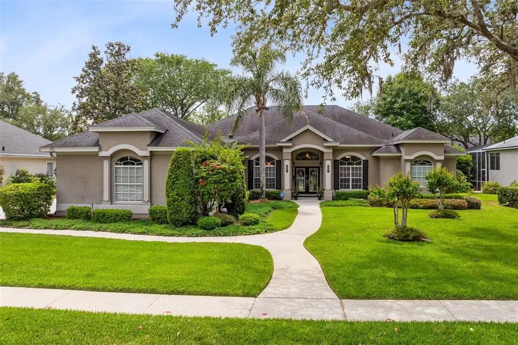 A Resort-Style Retreat in the Heart of Tuscawilla From the moment you arrive, this majestic Glen Eagle custom home will captivate you with its lush landscaping, vibrant gardens, and grand architectural presence. Nestled in one of Tuscawilla’s most sought-after custom-home neighborhoods, this four-bedroom, three-bath masterpiece blends timeless elegance with modern luxury. Follow the elegant sidewalk to a spacious front porch, where double custom glass doors—flanked by striking Palladian windows—invite you inside. The moment you step into the foyer, you’re welcomed into a sanctuary of sophistication and comfort. Soaring ceilings, abundant natural light, and exquisite Coquina stone insets frame the formal living room, which overlooks a sparkling pool—a tranquil scene that sets the tone for the entire home. Retreat to the luxurious primary suite, where a wall of sliding glass doors opens to the serene pool and patio. Dual walk-in closets provide abundant storage, while the spa-inspired bathroom boasts dual vanities with rich cabinetry and quartz countertops, a Jacuzzi tub, and a massive glass shower with a rain shower head—every element designed for relaxation and indulgence. All bathrooms in the home have been beautifully updated, and every door is a grand 8 feet tall. The family room is anchored by a gas fireplace adorned with Coquina shell, adding warmth and charm. Step outside into your own private resort. The solar-heated pool and spa are surrounded by manicured hedges for total seclusion. Over 700 square feet of covered outdoor living space offer two distinct entertaining areas complete with a tiki bar, ceiling fans, elegant lighting, and a full summer kitchen which is a culinary oasis on its own—equipped with grill, cast iron stove with oven, broiler and warming drawer, refrigerator, and icemaker. Gas powers both the spa and the summer kitchen for efficient performance. Throughout most of the home, beautiful tile flooring, and custom blinds on the oversized windows which create a bright, open ambiance. With eleven thoughtfully placed closets throughout the home, you’ll never run out of storage. Detailed craftsmanship is evident in every corner, from the finely trimmed windows and crown molding to the upgraded baseboards that carry a consistent elegance throughout. The luminous kitchen is a chef’s dream and an entertainer’s delight. Open to the spacious family room, it features extremely tall ceilings with custom archways, updated shaker-style cabinetry adorned with sleek stainless hardware, quartz countertops, and a custom backsplash. Under- and over-cabinet lighting enhances the ambiance, while the movable island, wine cooler, and upgraded appliances bring both style and function. A stunning mitered glass window in the breakfast nook offers a seamless view of the outdoor paradise. Every inch of this home speaks of thoughtful design, high-end upgrades, and meticulous care. This is more than a house—it’s a lifestyle, offering all the privacy, comfort, and resort-style living you could dream of, right in the heart of Tuscawilla.