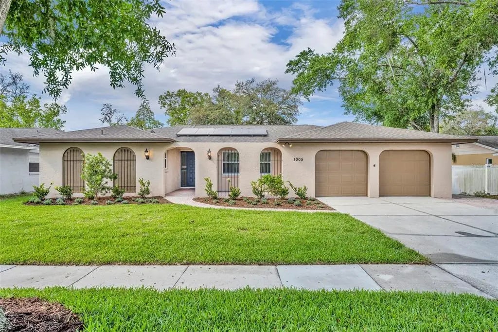 Nestled in the highly prized Oak Forest neighborhood of Winter Springs, this charming ranch-style home with a touch of Mediterranean flair offers an exceptional living experience. Boasting three comfortable bedrooms and two well-appointed bathrooms, this residence is move-in ready with brand new carpets flowing throughout. The heart of the home features an open kitchen and family room combination, creating a seamless space perfect for entertaining guests or enjoying quality time with loved ones. Freshly painted inside and out, the home exudes a bright and welcoming ambiance. Step outside to discover an oversized backyard, complete with a handy shed for extra storage. Enjoy enhanced privacy and curb appeal with the brand new vinyl fencing and thoughtfully designed new landscaping. Relax and unwind in the fully enclosed Florida room/back patio, equipped with its own AC unit for year-round comfort. Peace of mind comes standard with a roof replaced in 2022, a brand new irrigation system to keep the lush landscaping vibrant, and fully paid-off solar panels, ensuring significant savings on electrical costs. Located in a top-rated school district within the desirable Winter Springs community, this home offers not just a place to live, but a lifestyle. Don't miss the opportunity to own this gem with beautiful curb appeal in a highly sought-after area.