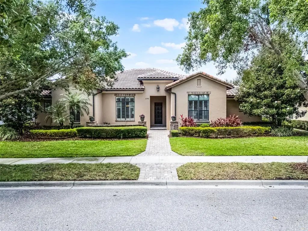 Enjoy luxury living at its finest in this exceptional custom estate, Villa Milano, located within the sought after guard-gated community of Waterstone in Windermere. Built by Silliman Homes with exquisite architectural detail, this expansive one-story residence offers 3,665 square feet of impeccably designed living space, featuring 5 bedrooms, 5 full bathrooms, and a private office. A rare detached guest casita enhances the home's versatility with its own entrance, full kitchen, living area, full bath, and walk-in closet—ideal for guests, a private office, or poolside entertaining. The welcoming front courtyard, accented with timeless Chicago brick, sets the tone for refined outdoor living. Inside, soaring wood-detailed ceilings, abundant natural light, and uninterrupted views of the resort-style backyard create an inviting and open atmosphere. The formal dining room is spacious and sunlit, offering serene views of the beautifully landscaped front terrace. The gourmet kitchen is a true centerpiece, showcasing custom cabinetry, stainless steel appliances, a 5-burner gas cooktop, double ovens, granite countertops, a large island, and a walk-in pantry with concealed cabinet-door access. It opens seamlessly to the bright and inviting family room, complete with a stone-accented gas fireplace, custom wood paneled ceiling, and multiple sliding glass doors leading to the covered lanai. The luxurious owner’s suite features hardwood floors, two walk-in closets, private access to the pool area, and a spa-like bath with a seamless glass walk-in shower, soaking tub, and dual vanities. Two additional bedrooms are connected by a Jack-and-Jill bathroom, while a fourth bedroom and full bath are privately situated near the front of the home. The private office includes custom built-ins and access to a full bath, making it easily convertible to a sixth bedroom. Step outside to a true backyard oasis, complete with a custom-designed pool with water features, a heated spa, an expansive lanai with retractable screens, and an outdoor wet bar equipped with dual beverage refrigerators—perfect for entertaining. The fully fenced yard is beautifully landscaped for privacy and includes citrus trees, adding both charm and Florida flavor to the space. Additional highlights include an oversized 3-car tandem garage, 3 tankless water heater, two newer air handlers, custom shutters, Sonos audio system, no carpeting, spray foam insulation, freshly painted exterior, and premium designer finishes throughout. Waterstone is an exclusive enclave of just 120 homes along the shores of Lake Butler, offering 24-hour guarded security and a private pedestrian entrance to Windermere Preparatory School. Ideally located near upscale dining, world-class golf, boutique shopping, major theme parks, and zoned for A-rated Windermere schools. This immaculate, move-in ready estate is the essence of Florida luxury living and truly a must-see.