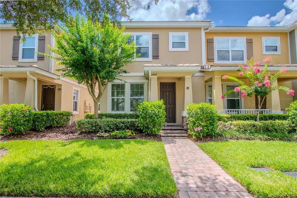 A beautiful 3 bedrooms 2.5 bathroom, 2 car detached garage Townhouse. Nice Over Sized seating island, walk in pantry and a office spance. The great room/dining combination has so many options for furniture layout and decorating. French doors lead to your private, fenced courtyard with additional 4 ft side extension of brick pavers. Upstairs is a large Master with a oversized walk in closet. Laundry room is in in 2nd floor. Secondary bedrooms located on the back of the townhome with hall bath. This community amenities includes pool, tennis, playground, walk/exercise path around pond and fishing dock over Lake Burden. Minutes away from Publix and new restaurants and shops. EASY access to Disney and major roadways to get to the Airport