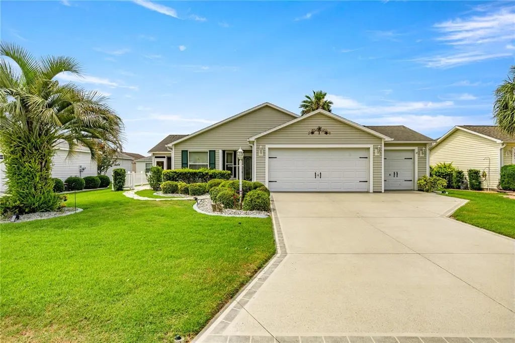 Welcome to 2528 Buttonwood Run—a beautifully maintained 3-bedroom, 2-bath home nestled in the heart of The Villages, Florida's premier active adult community. Boasting 1,477 sq ft of comfortable living space, this residence offers an ideal blend of functionality and Florida charm. Step inside to discover an open-concept living and dining area filled with natural light. The kitchen features modern appliances, ample cabinetry, and a convenient breakfast bar, perfect for casual dining or entertaining. Adjacent to the main living space is the inviting Florida room—an ideal spot for morning coffee, reading, or enjoying peaceful views year-round. The primary suite includes a spacious bedroom, a walk-in closet, and an en-suite bathroom with dual vanities and a walk-in shower. A generously sized guest bedroom and full bathroom provide comfort and privacy for visitors. This home offers a low-maintenance yard with gorgeous landscaping, a two car garage plus an additional golf cart garage, a water filtration system, and lovely curb appeal with its west-facing orientation—ideal for watching the sunset from your front porch. Located in a friendly and well-kept neighborhood, you're just minutes away from golf courses, recreation centers, shopping, dining, and everything that makes life in The Villages so vibrant.