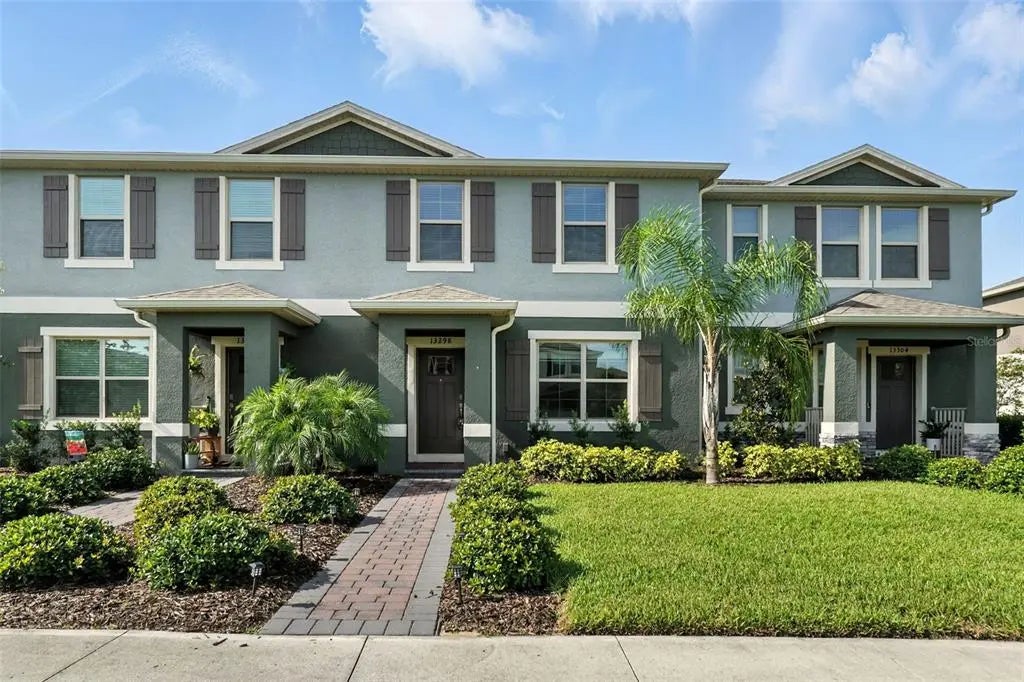Built in 2023 and beautifully staged, this stylish 3-bedroom, 2.5-bath townhome offers modern comfort in one of the area's most sought-after, amenity-rich communities—just minutes from Disney! Upstairs, you'll find all three bedrooms, including a spacious primary suite with a walk-in closet and a spa-like en-suite bath featuring dual sinks and a walk-in shower. A second-floor laundry area adds everyday convenience. Downstairs, the open-concept layout boasts sleek tile flooring, a bright living and dining area, and a contemporary kitchen with granite countertops and stainless steel appliances—all included. Additional highlights include a powder bath on the main floor, a practical drop zone by the garage entry, and pre-wiring for ceiling fans in all bedrooms and the living room. Step outside to a covered back patio—perfect for morning coffee or weekend gatherings. The rear-entry 1-car garage, 2-car driveway, and guest parking out front ensure room for everyone. Enjoy resort-style living with access to a sparkling pool, fitness center, dog parks, playgrounds, scenic walking trails, and frequent neighborhood events. With shopping right at the community entrance and lawn care plus exterior maintenance covered by the HOA, this home truly delivers low-maintenance, high-enjoyment living in a place everyone wants to call home!