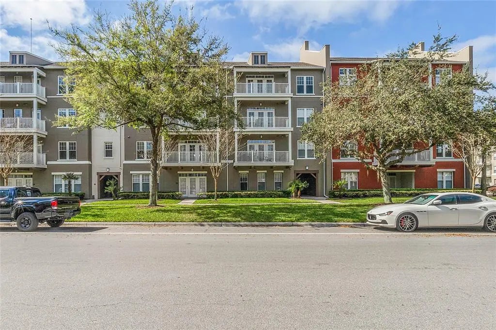 MOVE IN READY. This gorgeously renovated condo is nestled in the coveted Artisan Park neighborhood of Celebration, the town built by Disney. This open floor plan features a grand kitchen updated with stone countertops, a massive kitchen islands, impressive light fixtures, designer tile backsplash, Kitchen Aid appliances, wine fridge, and new contemporary cabinetry. Luxury vinyl flooring has been installed throughout for a modern finish - NO CARPET in the home. Your spacious living room walks out to a balcony space beyond the glass doors letting in plenty of natural light into the unit. The split floor plan gives both bedrooms privacy, with access to their own bathrooms. Enjoy an oversized primary bedroom closet for your wardrobe. And bathrooms updated with Carrara marble tile and modern gold hardware for an elegant feel. The unit includes a 1 CAR GARAGE, plus an additional storage unit to house your personal belongings (great for holiday decor). Rent includes Water, Trash, and Sewer utilities. And Artisan Park renters have access to the exclusive clubhouse amenities, including the largest heated pool in Celebration, with spa, a large fitness center, restaurant, and access to private neighborhood events hosted by the club house management. You are never far from Downtown Celebration, with it's famous shops and restaurants, festivals, and Sunday farmers market. It's a short commute to Disney Park attractions and the Orlando International Airport. Schedule a tour today!