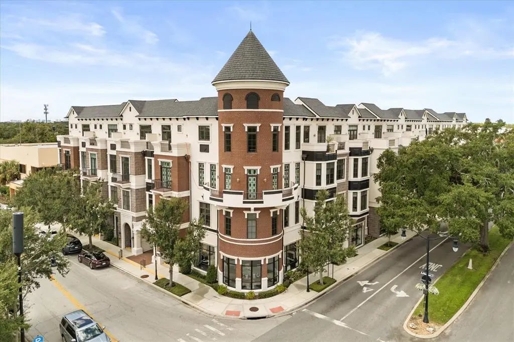 One or more photo(s) has been virtually staged. This signature corner unit in the exclusive Douglas Grand, is perched on the top two floors, with panoramic views of downtown Winter Park, Hannibal’s Square and Rollins College all steps away. This spacious luxury unit includes a three-bedroom split plan and three-and-a-half en-suite baths, with two private balconies from bedrooms overlooking Central Park. Every convenience of the desirable Winter Park lifestyle is at your doorstep. A gated parking garage provides security for you and your guests. Step inside to discover the 3,174-square-foot perfectly renovated residence with gorgeous new blonde wood floors throughout the living room and bedrooms, and surrounded by windows that invite beautiful light in. Entertain with ease in the expansive gourmet kitchen, recently renovated with added cabinetry including a pantry, new quartz counters, custom back splash and top-of-the-line appliances. Bar seating at the counter peninsula still leaves room for an additional dine-in table if you desire. What makes this unit unique is the open-air two-story center atrium that connects all the living spaces together and adds secluded outdoor living for privacy with views to the stars. The primary bedroom enjoys treetop views, private balcony just recently tiled and generous space and closet. The primary bath suite includes updated dual vanities, separate shower and an indulgent jetted tub. Secondary bedrooms are private with one upstairs and the third bedroom suite, or office, offers versatility and function. Elevate your lifestyle with a host of modern amenities, including updated designer fixtures, recessed lighting and fans, some new Pella doors and windows, fresh paint, spacious walk-in closets that provide ample storage in every bedroom and a freshly painted interior and private laundry. Enjoy the added convenience of two deeded parking spaces in the gated-attached garage, with direct access to your floor and access door right next to your front door, so convenient. Every aspect of luxury living has been meticulously curated for your enjoyment. Indulge in the unparalleled convenience of strolling to nearby restaurants, coffee shops and boutiques. Rollins College is nearby, as well as fabulous events in Central Park and the bustling farmers market. Don’t miss your chance to experience the pinnacle of urban sophistication at The Douglas Grand.