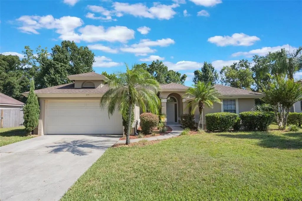 Welcome to this charming single-story home nestled in the highly desirable Wekiva area of Central Florida. This thoughtfully designed residence features an open floor plan with soaring high ceilings, skylights, and sliding glass doors that fill the living spaces with warm, natural light! The spacious great room is ideal for relaxing or entertaining, complete with a cozy wood-burning fireplace and ceiling fan to keep the space comfortable year-round. The adjacent kitchen features a large island, ample counter space, and a convenient dinette area. Designed with privacy in mind, the split floor plan offers a primary suite tucked away from the secondary bedrooms. The primary bedroom boasts a walk-in closet, direct access to the backyard via sliding doors, and bathroom with dual sinks and a large, tiled walk-in shower. Enjoy easy-care living with tile and laminate flooring throughout. The home also features a NEW AC SYSTEM 2024, offering efficiency and reliability. Step outside to the nicely manicured front yard, beautifully landscaped with shrubs and palm trees. Take advantage of all the amenities this community offers, including a community pool, playground, tennis courts and LOW HOA. Located just 5 minutes from shopping, restaurants, and with quick access to SR-429 and US 441, this home offers easy commutes to Orlando, Lake Mary, and all of Central Florida's world-class attractions. Outdoor enthusiasts will love being minutes from Wekiwa Springs State Park for hiking, kayaking, and wildlife watching. Don't miss this opportunity to live in a vibrant, well-connected community that perfectly blends comfort, convenience, and nature!