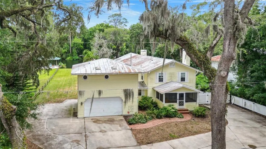 ---BRING OFFERS/ INVESTOR ALERT! AS-IS CASH SALE! Renovate or Build Your Dream Home on this Large Waterfront Lot! Flooding in home from Hurricane Helene; Electric is currently off as exterior electric meter needs replaced (ask for electric quotes)---Withlacoochee River Waterfront Oasis Available In Charming Yankeetown! What a GREAT OPPORTUNITY to own this 5 bedroom/ 3 full bath, 3,517 square foot property sitting on .46 acres directly on the River! Spend your days by the water on the 45-foot long wooden dock w/ electric hookup which includes cleats to moor a large boat in deep water. This is the quintessential Old Florida Riverfront property, built in 1945, with an idyllic screened-enclosed porch entrance, hardwood floors, metal roof, and an oversized garage for your water toys. Enter into a front living room with wood-burning fireplace, hardwoods, and fun pool table set up. Just off of the living room is a full bathroom and an office room leading to a set of stairs. Take a walk upstairs above the garage to discover the private primary bedroom suite that can easily fit a King-sized bed, a huge walk-in closet, remodeled shower, separate tub, room for double sinks, and lovely furniture to convey. Back downstairs, the kitchen sits in the center of the home- find tile, a walk-in pantry, stainless steel appliances and granite counters opening into the massive and airy 30x35 ft. great room. Big, beautiful wooden beams frame this space; ceiling fans, a floor to ceiling wood-burning fireplace and large windows make this space an entertainer's dream! The pool sits inside a white birdcage just off of the great room through French doors. Four more bedrooms with hardwood floors and a full bath with shower can be found upstairs for your guests. Take a morning stroll down Riverside Drive, enjoying a paved, one-way road in front of your residence; or, walk to lunch or dinner at Blackwater Bar & Grill located just two properties down. The post office, library, and marinas are at your fingertips in historic Yankeetown. Want to get out on the water? You are minutes away from scalloping, fishing, and boating activities in the Gulf of Mexico! Flood zone AE; property sits in city limits in the Town of Yankeetown. Utilities are public water, trash, electric; private septic. VRBO it or bring the whole family! NO HOA/ NO Deed Restrictions; adhere to city/ county permitting regulations for your renovations/ new build. This is a CASH ONLY, AS-IS SALE. Any contents left in the home shall convey. The Withlachoochee River is calling your name... are you jumping in?!