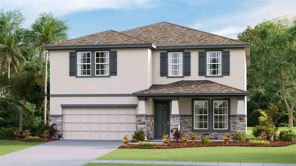 One or more photo(s) has been virtually staged. Under Construction. This two-story, all concrete block constructed home has a large open concept first floor with a kitchen overlooking the great room, dining area, and a covered lanai. A flex room at the entrance of the home, as well as a spacious guest bedroom and full bathroom, complete the first floor. Upstairs, Bedroom 1 with ensuite bathroom, three additional bedrooms, a third full bathroom, and a well-appointed laundry room surround a large bonus living room. This home comes with an installed stainless-steel dishwasher, electric range, and microwave. Pictures, photographs, colors, features, and sizes are for illustration purposes only and will vary from the homes as built. Home and community information including pricing, included features, terms, availability, and amenities are subject to change and prior sale at any time without notice or obligation. CRC057592.