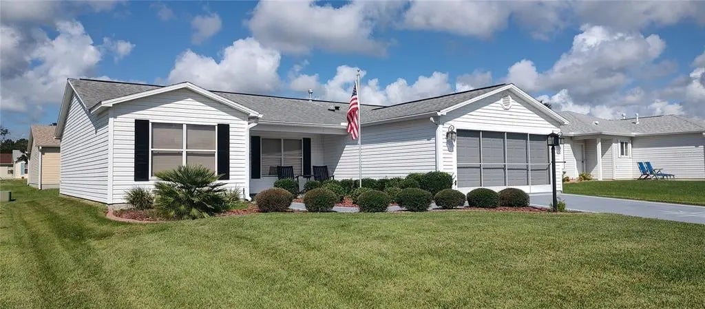 3 Bedroom or entertainment room with 2 full bathrooms. FULLY FURNISHED down to the coffee maker & blender, towels, linens and just it needs YOU! Rent includes water, sewer, trash, and lawncare! Looking for a longer term rental for this 55+ Villages home? This is a great retirement home and MOVE IN READY. Screened in garage as well as screened in back porch. The home has a new kitchen with GE appliances and GE washer and dryer already here!