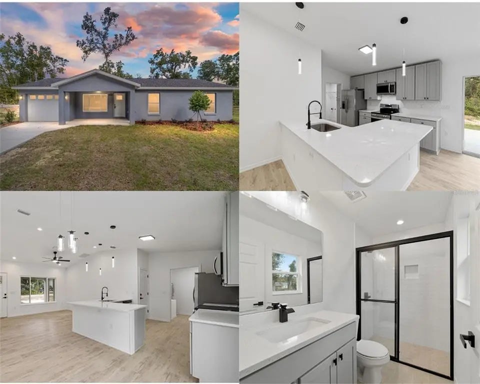 Ready for immediate occupancy! Home is eligible for USDA program with ZERO DOWN! Builder offering 5 YR WARRANTY and $2500 towards buyer's closing costs! New BLOCK construction 3 bedroom 2 bathroom home. Home features luxury vinyl plank flooring in an open floor plan with high end finishes and recessed lighting throughout home. Step out the sliding glass doors to your oversized rear patio. Perfect for gatherings and backyard cookouts. Upgraded kitchen features 36" soft close cabinets, quartz countertops, breakfast bar with pendant lighting, tile backsplash, stainless steel appliance package including side by side refrigerator, electric glass top range, over the range microwave and dishwasher. Master bathroom features porcelain tile, quartz vanity top and walk-in shower. Walk-in closets in every bedroom. Located close to Ocala and Gainesville, this home is convenient to shopping, dining, and entertainment. Don't miss out on this beautiful home! Seller has another listing available (OM688736)