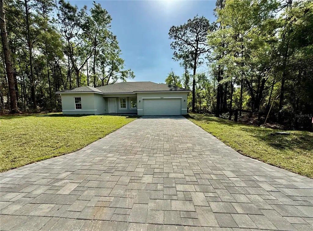 PRICE REDUCTION! 2025 MOVE IN READY HOME! NO FLOOD ZONE! This contemporary, open floor plan home in Citrus Springs boasts curb appeal w/ a paver driveway & front porch with a ledger stone panel across the front. Step in with Tall ceilings of 9’4” in all rooms, which adorn each & every room & a tasteful Ceramic Floor Tile that resembles wood plank! Your elegant kitchen for cooking & entertaining has white cabinets with granite countertops, an island for extra counterspace, large pantry & all stainless appliances. Both bathrooms have granite countertops with tile shower & dual sinks in the master bathroom, and tile in the guest bath. Easy access to schools, medical, restaurants, parks, walking & biking trails, tennis courts, golf & the Famous Rainbow Springs park & river await you!