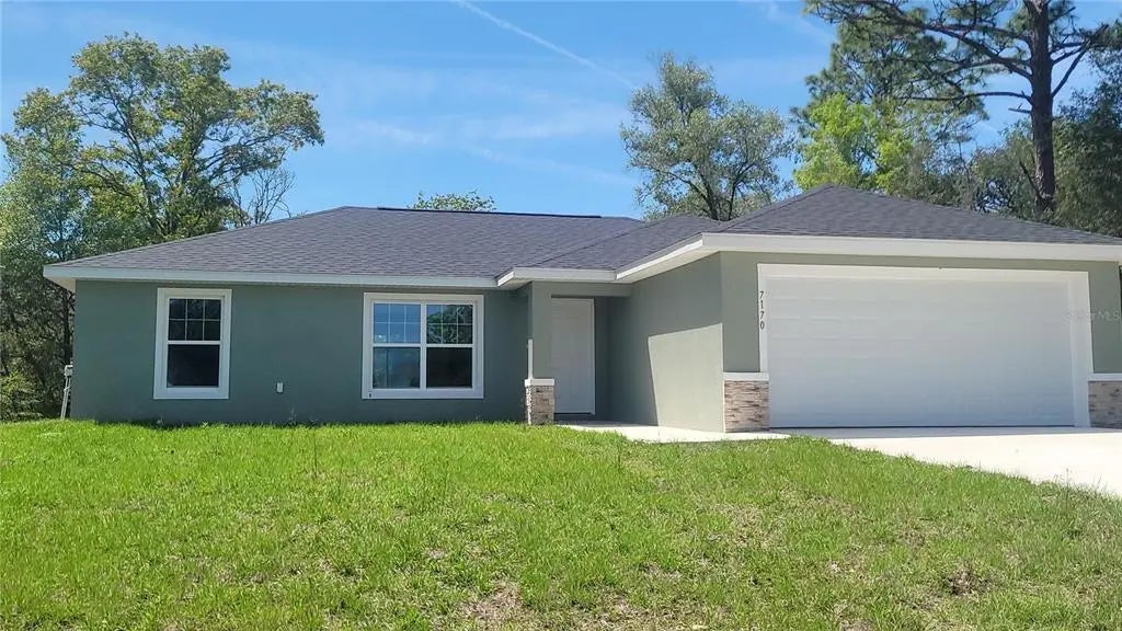 One or more photo(s) has been virtually staged. MOVE IN READY!!! One of the cheapest new construction homes in Citrus Springs, you won't find a better deal. Beautiful new construction on big, private lot! No neighbors to the left, right, or behind. Just a block off of the main Citrus Springs Blvd, 1 mile from Citrus Springs Community Center, and 2.5 miles from the Citrus Springs Trail Head connecting to the Withlacoochee Riding Trails. Luxury Plank Vinyl flooring throughout all living and common areas, tile in bathrooms, and carpet in the bedrooms. Open floor plan with dining area and eat-in kitchen, all done in neutral, pleasing colors. Inside laundry with W & D hook-ups. Walk-in closet in Master bedroom. Stainless steel appliance package in the kitchen. Cabinets are white shaker-style with light luxury quartz countertops. This home is bright, clean, and beautiful. Please see attached documents from Builder (Builders Contract Addendum & Warranty) Actual photos + staged model home for reference.
