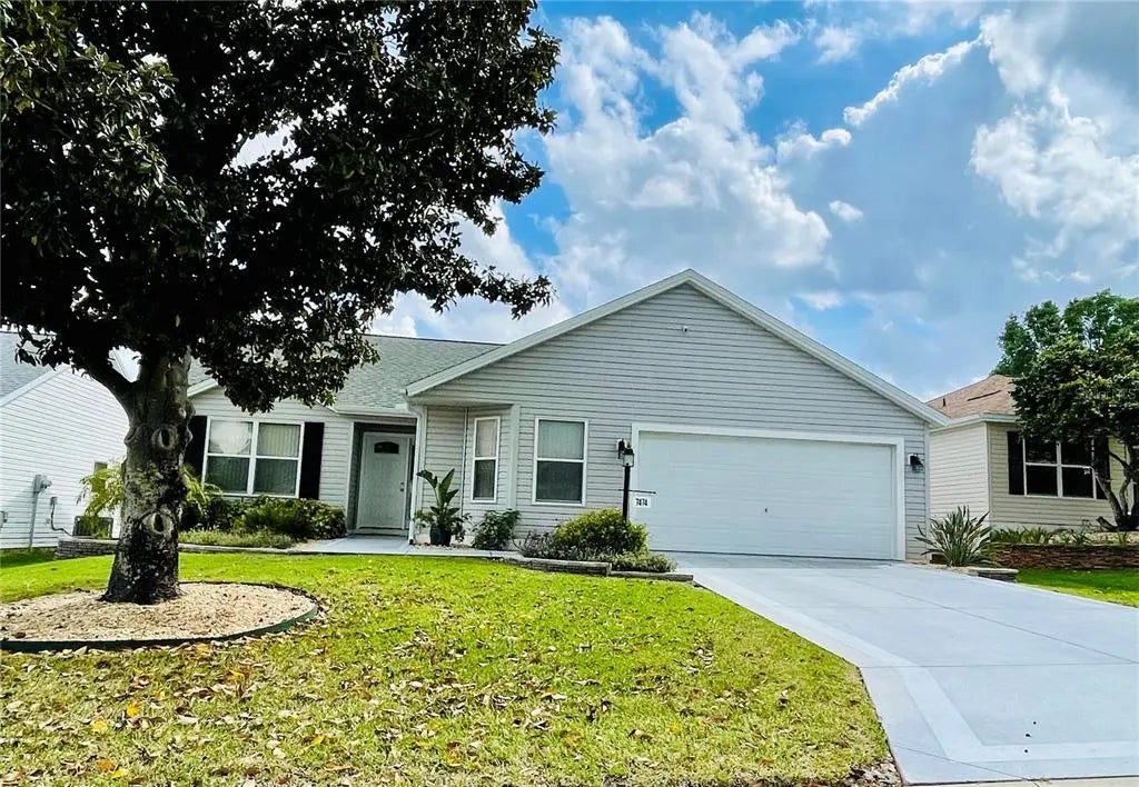 SIGNIFICANT PRICE REDUCTION OVER $12,000 ... Welcome to this pristine FURNISHED Wisteria Designer home nestled in the charming Village of Calumet Grove in The Villages. This meticulously maintained 3-bedroom, 2-bath residence offers comfort, style, and thoughtful upgrades throughout. With a newer roof (2020) and fresh landscaping, the curb appeal is undeniable from the moment you arrive. Step inside to discover a bright, open floor plan that seamlessly blends indoor and outdoor living. Spacious kitchen features pass-through into dining room for entertaining guests, breakfast bar, appliances, garbage disposal, pantry, wood cabinets w/pull-out drawers, and breakfast nook area. Ceiling fans throughout. The primary bedroom is nice size and features a generous size walk-in closet. Primary bathroom has his/her sinks and spacious step-in shower. Inside laundry room with washer and dryer. Enjoy relaxing mornings or entertaining guests in the enclosed glass sunroom (2024), or step outside to the 9 x 12 concrete patio (2024) —perfect for summer barbecues and outdoor gatherings. Additional features include a new front entry door, LVP and vinyl flooring, NEWER digital thermostat, Wi-Fi-enabled sprinkler system with rain sensor, tankless gas water heater, rain gutters, ring camera and a whole-house water softener for added convenience. All kitchen appliances are electric, however, gas line installed for range. HVAC (2017), keyless entry, garage door opener and ceiling fans. Conveniently located just minutes from the Nancy Lopez Golf Course and Country Club, as well as other recreational amenities, this home offers the ultimate Florida lifestyle in one of the most sought-after communities....THE VILLAGES! Don’t miss this opportunity to own a meticulously cared-for home in a prime location! *** NO BOND ***