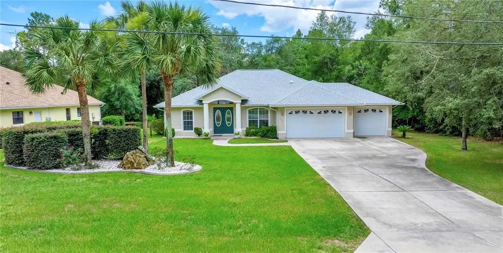 Since last listed, this beautiful home now features a brand new roof installed in 2025, complete with a 7-year transferable warranty! This 3-bedroom, 2-bath pool home offers 2,074 square feet of living space and includes a versatile flex room, ideal for a home office or bonus area. It also boasts a spacious three-car garage for all your storage and vechile needs. As you walk in you’ll find wood-look laminate flooring throughout the main living areas, an open floor plan, vaulted ceilings and an abundance of natural light. Multiple sliding glass doors lead to the screened-in outdoor area, creating a seamless indoor-outdoor flow. The kitchen offers plenty of cabinet, counterspace, pantry and breakfast bar for all your cooking needs. Large primary suite includes two walk-in closets and an en-suite bathroom featuring double vanities and a tiled walk-in shower. The split floor plan provides added privacy with two generous guest bedrooms and a full guest bathroom conveniently located near a door to the pool area. Step out the sliding glass doors and unwind in the screened-in lanai featuring a oversized pool, perfect for year-round enjoyment. Mature trees line the back of the property, providing natural privacy and the home backs up to a former golf course, offering a peaceful, open view with no close rear neighbors. Located in Citrus Springs, this home is close to schools, golf course, shopping and dining, with the Gulf Coast just a short drive away for all your fishing and boating needs. Schedule your private showing today!