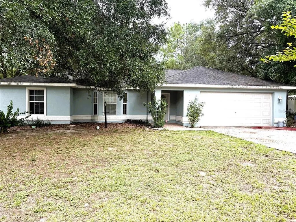 This charming 3 bedrooms, 2 baths home in Silver Springs Shores is located on a quiet cul-de-sac and close to town. Home features a bright and spacious split-bedroom floor plan, cathedral ceilings, tiled floors throughout the home, a large eat-in kitchen with an abundance of storage space, primary bedroom with walk-in closets and ensuite bathroom with a shower. An inside laundry room, a 2 car garage with garage door opener. Enjoy the nice fenced backyard perfect with plenty of room for outdoor activities and entertainment.