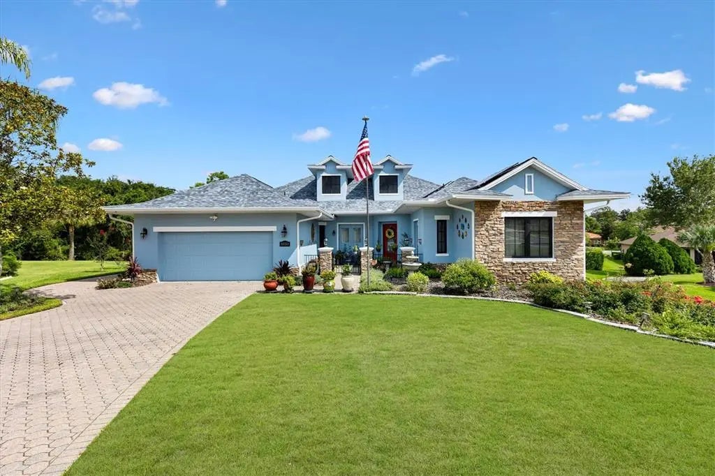 Welcome to a truly enchanting retreat in HARBOR HILLS COUNTRY CLUB, a picturesque all-ages community nestled on the serene shores of Lake Griffin part of The chain of lakes. Just a few miles from the vibrant lifestyle of THE VILLAGES, Florida, this home offers the perfect blend of privacy, luxury, and thoughtful upgrades tucked away in a peaceful cul-de-sac surrounded by gentle rolling hills. As you arrive, a charming BRICK PAVER driveway and walkway guide you into a beautifully landscaped courtyard. Through the elegant threshold, you're welcomed into a soaring rotunda that sets the tone for the grandeur within. The main living area is open and airy with 14 foot ceilings, with 10 foot ceilings in the bedrooms, all adorned with crown molding, create an atmosphere of refined comfort throughout. This home is truly magical in both design and efficiency. ***A NEW ROOF (2025)*** NEW FULLY PAID FOR SOLAR PANEL SYSTEM power the entire home, resulting in a negative monthly electric bill. You'll stay comfortable year round with two brand ***NEW MINI-SPLIT UNITS (2025)*** in two of the bedrooms (one currently used as an office), ***NEW HVAC System (2020)*** The garage features *ELECTRIC MAJIC STAIRS* for easy attic access, a *LIFT SYSTEM*, and attic flooring for ample storage and a radiant barrier. The heart of the home is a gourmet Kitchen designed for both beauty and functionality. Top-of-the-line STAINLESS STEEL APPLIANCES, on-demand hot water, a hood vented outside, and two spacious pantries (including a walk-in) make everyday living a delight. GRANITE countertops, a central island, a breakfast bar, and pull-out shelving in the lower cabinets create a kitchen space that is as luxurious as it is practical. A new retaining wall adds to the structural integrity and charm of the outdoor space. With four spacious bedrooms and two beautifully appointed bathrooms and half bath, including a luxurious Primary en-suite with Dual vanities, walk-in shower, and a jetted soaking tub, this home is designed for both relaxation and entertaining. Step into the LANAI featuring a custom built bar, or unwind under the covered pergola on the brick patio, complete with a suspended swing, the perfect place to sip your morning coffee or toast the sunset. Outside, the magic continues with professional landscaping, and the added delight of fruit bearing AVOCADO and FIG trees. There's an electric fence so your furry babies can roam freely around within the boundaries of your yard and ring security cameras for added security. From sunrise to starry evenings, this home offers a lifestyle wrapped in beauty, comfort, and thoughtful detail. Come explore this rare gem in Harbor Hills and prepare to fall in love. Membership in the social club and golf course are optional. Schedule your private showing today, and prepare to be captivated!