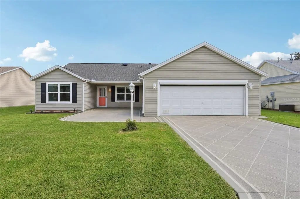 Welcome to this beautiful Bougainvillea model, offering a spacious open layout and stylish updates throughout. The kitchen has been tastefully remodeled with quartz countertops, stainless steel appliances, and upgraded faucets and hardware. Luxury vinyl plank flooring runs seamlessly through the home, enhancing both durability and style. The bathrooms have been tastefully updated with all-new fixtures, hardware, quartz-topped vanities, and beautifully tiled showers. Lighting and ceiling fans have been updated throughout the home for a modern, cohesive feel. The primary suite features his-and-hers closets, a double sink vanity with quartz countertops, a beautifully tiled glass-enclosed shower, and a private water closet. The guest bedroom includes a convenient Murphy bed, perfect for maximizing space. Additional upgrades include a whole-house water filtration system with water softener and reverse osmosis. The garage has been extended to fit a car and two golf carts and features a motorized screen door for added ventilation and ease. Enjoy the expanded front patio and the enclosed lanai, complete with a mini-split system for year-round comfort. The rear patio has been extended and is surrounded by vinyl fencing, offering privacy and no rear neighbors. Decorative painted driveway and patios add a custom touch. Just a short walk to the Lynnhaven Recreation Center and conveniently located near shopping, dining, and medical facilities along CR-466. Lake Sumter Landing is just a short drive away, with a new Costco coming soon nearby for added convenience.