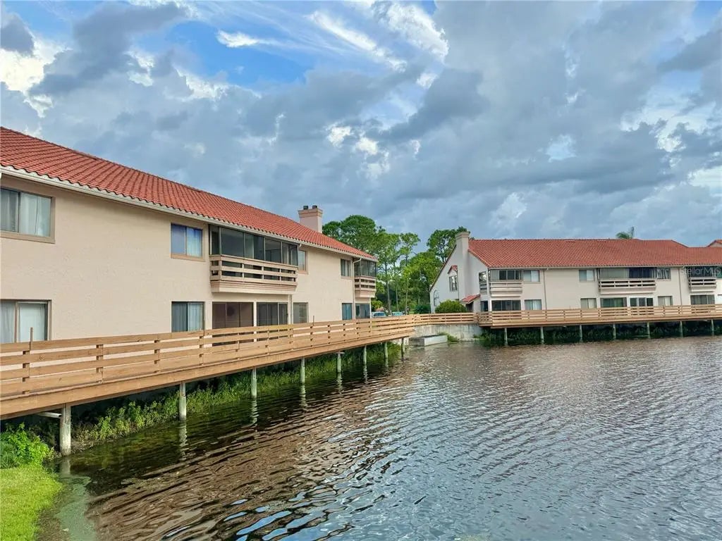 Welcome to Unit #1906, a 2-bedroom, 2-bath condo overlooking the pond in the desirable gated community of Winterset. This charming condo offers a split bedroom plan for added privacy. The kitchen features a cozy eat-in area, breakfast bar, and flows into a spacious great room with vaulted ceilings and skylights, filling the space with natural light. Enjoy serene pond views from the great room and primary bedroom, both providing access to the screened-in lanai. Primary suite has walk-in tile shower, dual closets, private water closet, and linen closet. The second bedroom offers convenient access to the hall bathroom with tub/shower. Utility closet with stackable washer/dryer. There is also an additonal storage unit downstairs. Savor in Winterset's amenities including; the heated community pool, hot tub, clubhouse, waterfront access to Lake Winterset, and tennis courts. Conveniently located near Publix, Walmart, shopping, and just a short drive to Legoland!