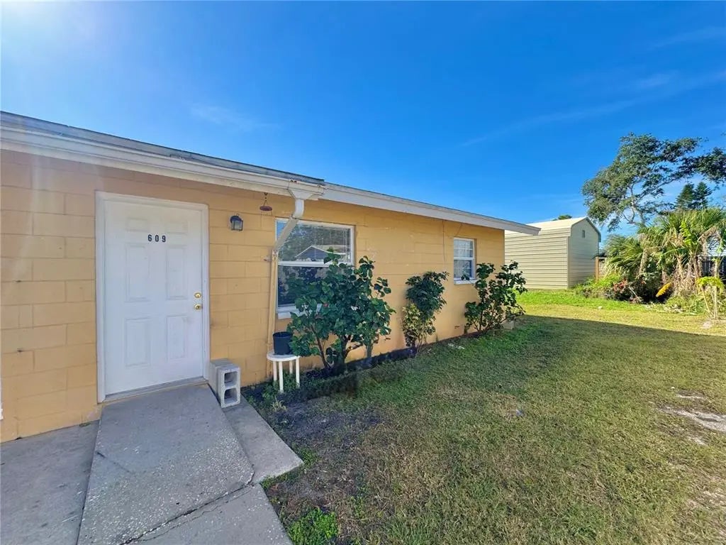 Clean 2-bedroom 1-bath duplex across from Winter Haven High School. Features vinyl flooring throughout (no carpet), kitchen with eat-in area, bathroom with tub/shower. Access to shared utility room with washer/dryer. Fenced in yard. Water is included in rent.
