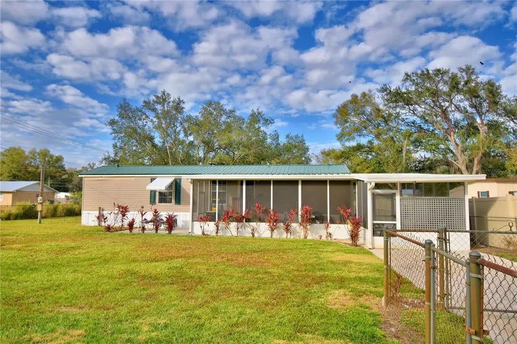 This one won't last long! 2 Bedroom, 2 Bath Mobile Home (2005) Situated on close to half an acre...Completely fenced & Metal Roof is only 2 years old!! Huge Screen Enclosure added 2 years ago, Back Shed completely redone with new siding and Shingle Roof less than a year ago! Sprinkler Well and Septic Tank... Home has been deep cleaned and exterior has been Pressure Washed a week ago...This home has been VERY cared for!