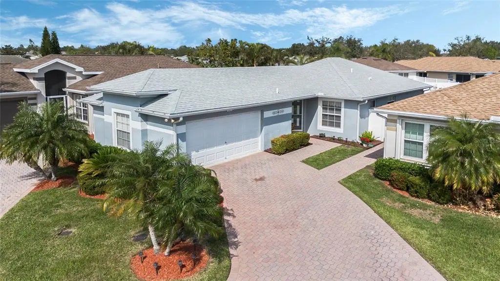 Located in the highly desirable, maintenance-free, gated community of Traditions on Lake Ruby, this wonderful 2-bedroom, 2-bath home is being offered turn-key and fully furnished. Upon arrival, you'll be welcomed by a charming front porch with tile flooring and a glass storm door. Inside, the open-concept floor plan features a spacious living room with bamboo flooring, a decorative planter shelf, and triple glass sliding doors leading to the Florida room. The eat-in kitchen boasts an arched entryway, maple wood cabinetry, a ceiling fan, a closet pantry, and a charming breakfast nook with views of the picturesque park. The formal dining area is enhanced by bamboo flooring, a vaulted ceiling, and a glass sliding door that provides access to the fenced-in yard. The primary bedroom suite features solid surface flooring, an upgraded ceiling fan, a walk-in closet, and views of the paved patio. The primary bathroom is equipped with a maple wood vanity and a walk-in shower with a glass enclosure. For outdoor enjoyment, there is a fully fenced in yard with a generously sized patio adorned with pavers, providing a serene space to relax and unwind. Other amenities include a Florida Room with Tile Flooring, Irrigation System w/ Irrigation Meter, New Toilets 2025, Gutters, Garbage Disposal, Termite Bait Traps, 2 Car Garage w/Garage Door Opener, Architectural Shingle Roof installed 2024 with additional Attic Insulation, Paved Driveway and Walk Way. Traditions at Ruby Lake offers an exceptional array of amenities, including a lakefront clubhouse, dock and boat ramp, heated swimming pool and spa, ballroom, billiards, meeting rooms, a library, computer room, craft room, dog park, tennis and pickleball courts, basketball, bocce ball, shuffleboard, fitness center, aerobics studio, and much more. Conveniently located near shopping, restaurants, and major routes, this home provides a truly exceptional lifestyle. The monthly HOA fee covers exterior house painting, cable, internet, front yard lawn service, and access to clubhouse amenities, ensuring a worry-free living experience.