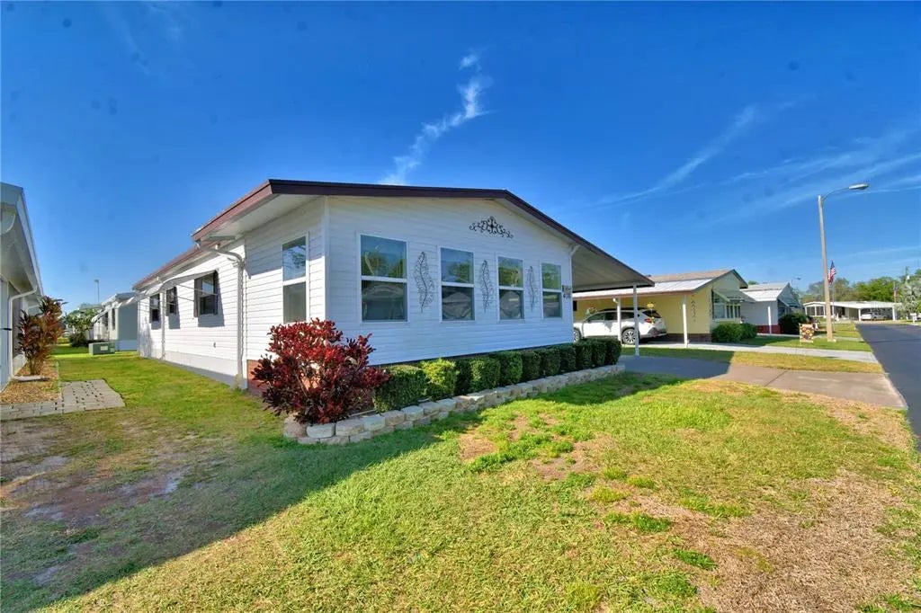 You won't believe you are in a manufactured home the minute you walk in the door. The kitchen has been updated and is open to the living room. Across the front of the home you will see new windows installed in the porch area. The age of the roof over is unknown, but it is metal and has a very long life. The air conditioner is about 5 years old and the water heater was installed in 2024. There is no carpet in the home. The 10 x 22 front porch, though not included in the square footage offers more living space to the home. The home is serviced by a house filter. There is no paneling in this home. The home comes fully furnished with all you need. Some of the tools and personal items will not convey. Oakwood Estates, a 55+ community offers many activities and amenities. The amenities include the two pools, two clubhouses, tennis and shuffleboard courts, and much more. Activities are available every day of the week. You can be as busy as you would like or just sit back and watch the world go by.