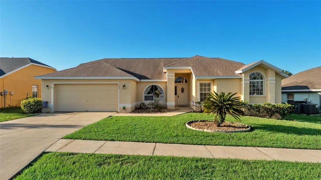 Welcome to this spacious 4-bedroom, 2-bath home in the desirable community of Savanna Pointe. Featuring volume ceilings and an open floor plan, this home offers plenty of room to live and entertain. The kitchen is a chef's dream with an abundance of cabinets for storage. The living room offers a large open gathering space with sliding doors leading to the screened-in patio. The primary suite is generously sized and includes its own sliding doors to the patio, plus an en suite bathroom complete with a shower, garden tub, and dual sinks. The split-bedroom layout provides privacy and comfort for the additional bedrooms. Enjoy the outdoors year-round on the oversized screened lanai, complete with ceiling fans—perfect for relaxing or entertaining. Additional highlights include an inside laundry conveniently located next to the kitchen and a 2-car garage with extra storage space. Ideally located just off Highway 27, this home offers easy access to shopping, dining, schools, and major roadways.