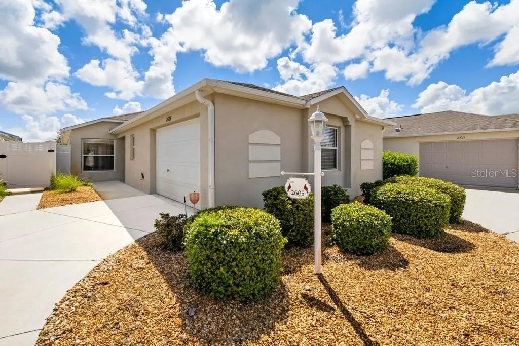 BOND PAID and NEW ROOF!!!! This is a fox glove model, courtyard villa that is block and stucco, with a open floor plan. Laminate flooring in kitchen, dining and living area. Enclosed Lanani overlooking large backyard that has very low maintained. Home is move in ready with furniture remaining. New roof 11/2024 and air conditioner is only 2 years old. Located in the middle of the villages near golf courses. Ready for immediate occupancy just bring your clothes.