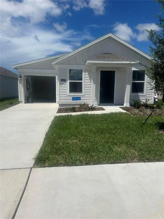 New construction home in the peaceful community of Peace Creek 3bed/2 bath. You walk into a large family room area with vaulted ceilings, dining area, and kitchen with stainless appliances - refrigerator, range, dishwasher, & microwave. Stacked Samsung washer/dryer. Spacious master suite with 2 closets and door that opens to the rear yard. En Suite Bathroom. 2nd & 3rd bedrooms share hall bathroom, each room comes with ceiling fans. Irrigation system, in wall and in ground pest control system. 1 car garage with control opener. Community pool & playground. Short drive to Publix, Home Depot and more.