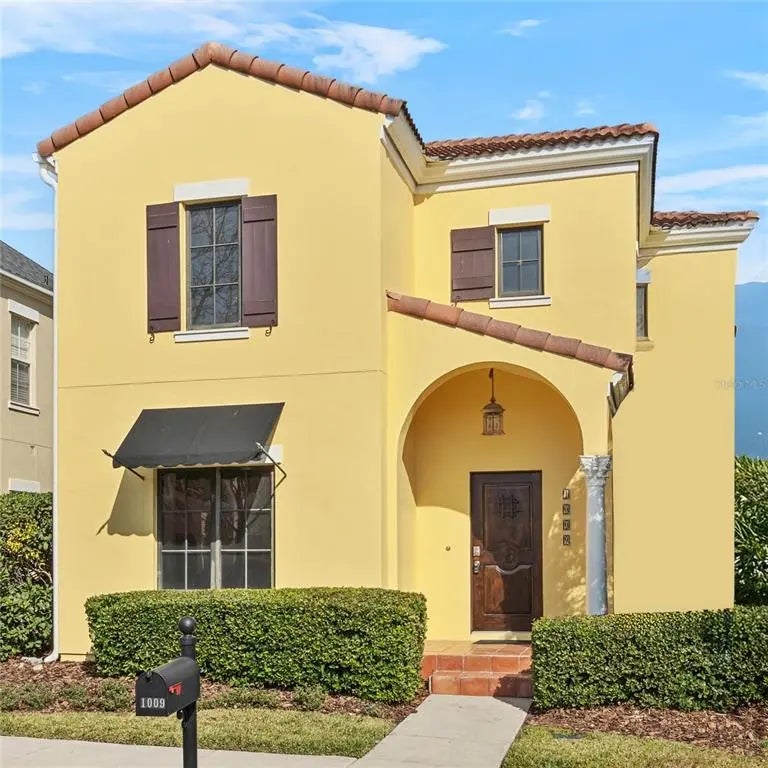 ** PLEASE Ensure you visit the link for a 3D Walkthrough Tour of this home! ** Welcome to 1009 Wiregrass St, a well-appointed Mediterranean style home of 3 bedrooms and 2.5 bathrooms situated on a quiet corner lot in Celebration’s East Village. This Cambridge Calloway floor plan is move-in-ready - with fresh paint, a 2023 installed Air Conditioner and Water Heater, all new modern LED lighting and ceiling fans, and an excellent tile roof. As you enter through the massive wood front door, you find new engineered wood floors throughout the home. To the immediate left is a large living room with built-in cabinets and Murphy bed to welcome guests or extra family. To the right is a unique half bathroom with its antique vanity and over-mount art glass bowl, custom mirror and lights and a European style commode with built-in controllable bidet feature. There is a large under-stair storage closet in the hall, and the beautifully remodeled kitchen and large family room sit just beyond the staircase. Large windows look out from the family room onto the large, screened-in patio area with its 12-inch tiles and diamond accents. Beyond the screened patio is a private paver patio and fully fenced backyard, ready for a personal landscaping touch. The remodeled kitchen has a center island with custom granite counters and raised breakfast bar, plus double stainless sink. The long granite counter runs along the outside of the kitchen, with loads of new ½ inch soft-close cabinets and drawers. The stainless appliances include a Maytag French-door refrigerator and microwave, and a KitchenAid dishwasher. On one side of the kitchen is a wide-open pantry with plenty of shelving, and at the back of the kitchen is a large eat-in area with a new retractable blade ceiling fan chandelier. From the back hall is a door to the attached oversized 2 car garage, behind which sits a driveway large enough to park an additional 2 cars. At the top of the wooden staircase, with its extra wide baseboards, sits a large laundry room, as well as a remodeled bathroom – with custom vanity, overmount porcelain bowl and waterfall faucet, and wide cabinet mirror. The glassed walk-in shower includes both rain and wand heads. Towards the front of the house upstairs, the second bedroom includes a California style closet. The third bedroom down the hall has a built-in desk, cabinets, armoire, and California style closet. The generously apportioned owner’s suite at the end of the hall has a large window overlooking the patio and backyard. It boasts a large walk-in California style closet, a huge custom bath with its 12x24 inch tile floors, dual custom marble vanities with overmount glass bowls and hydrant faucets, plus large mirrors and lights. The bath has a large deep soaking tub and separate large tiled and glass walk-in shower with separate rain and wand heads, plus three additional full body shower heads. This home has had no one living in it since its remodel and is in pristine move-in condition.