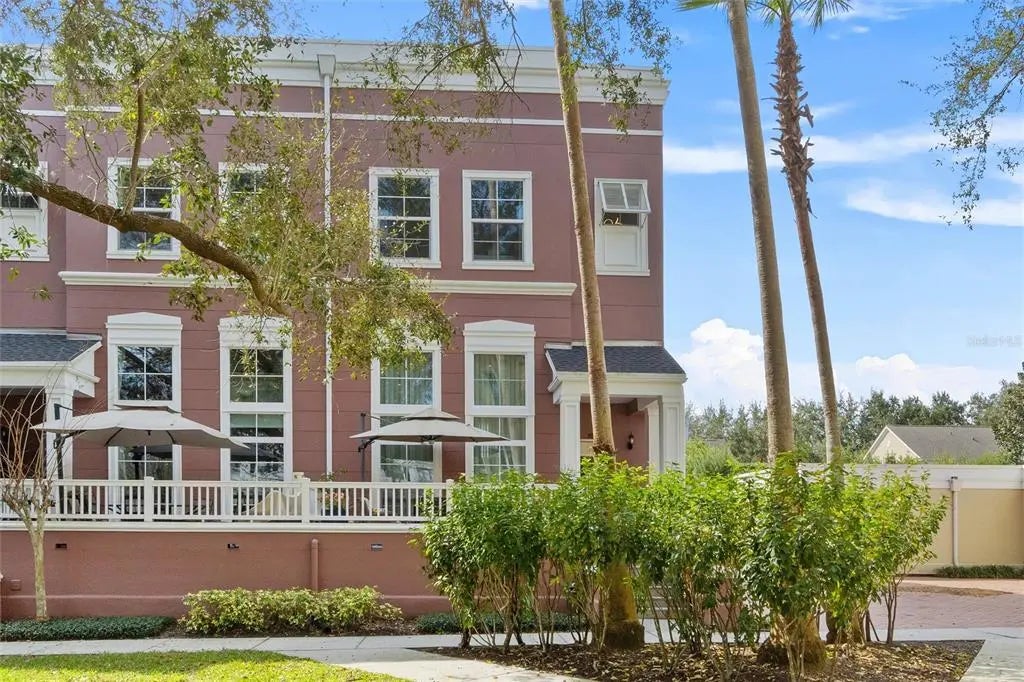 Welcome to this spectacularly renovated 3 BED, 2.5 BATH Townhome in Downtown Celebration. With its DOUBLE-PANE WINDOWS, ATTACHED OVERSIZED 2 CAR GARAGE, LUXURY WOOD-GRAIN VINYL & gorgeous CHEF’S KITCHEN – move in ready to enjoy everything there is about the town! A unique open plan concept has been enhanced by a combination of tempered glass pony walls with stainless-steel rails, authentic individually-sourced and hand-laid brick walls on three levels, and new fixtures throughout (including Lutron smart lighting). All new doors in frosted glass have been installed on every floor. The Stunning CHEF’S KITCHEN – all NEW in 2022 - boasts a 30 SF DOLOMITE WATERFALL Peninsula and LUXURY APPLIANCES (Fisher & Paykel refrigerator plus Double-drawer dishwasher, Bertazzoni induction range with convection oven). Natural light pours into the front of the house from double-story windows that feature custom, motorized 16’ x 21’ window treatments on stainless rods that coordinate with the home’s tasteful modern décor - trim in natural wood, brick, and dolomite match with accents throughout the home, and emphasize the attention to detail during the home’s redesign. First floor sitting room - currently being used as a family game room - could function as a den, office, or formal living room. New guest bath has a gorgeous floating vanity and art glass mirror. The New half-bathroom adjacent to the primary living area includes an impressive floating vanity made from same dolomite slabs used in the kitchen renovation. Upstairs, enter the Primary Suite through space-saving pocket doors; where neutral, textured wallpaper adds a touch of sophistication to the large Primary bedroom, with windows that overlook the beautiful green space and canal sitting to the front of the building. Standout feature in the Primary Bath is its 66-inch SOLID SURFACE RESIN STONE bathtub, standing just next to a grand glass shower enclosure that features DUAL SIZEABLE FIXED RAINFALL SHOWER HEADS, as well as convenient hand-held shower wands! The Primary Bathroom also features a double vanity and separate FULL-COUNTER HAIR and MAKEUP STATION (with a laundry chute to the ground-floor laundry room!) and a high-end bidet toilet. Two additional bedrooms upstairs boast plenty of natural light. On the ground floor a new fully tiled laundry room – with its convenient clothes chute from the Primary Bathroom – includes full-size Samsung washer and dryer (2022) and retractable, LED ceiling fan. The Ox Floors polyacrylic garage floor installed in 2024 will be touched up for new Buyers and includes a lifetime warranty (transferable once). Closets in the garage offer extra organized storage space. Double-pane windows were inspected and replaced in 2025 include a transferable warranty. This home includes two A/C zones, with a NEWER UPSTAIRS AC (2022) and New SMART THERMOSTATS (2025). A New large high-efficiency WATER HEATER (2025) and a Newer electrical panel (2021) give new Buyers peace of mind for the future, alongside Recent Association improvements to the outside of the building (NEW HIGH-EFFICIENCY ROOF in 2023, with updated stucco, trim and fresh external paint). A UNIQUE SPECIAL FEATURE ROOM off the upstairs landing (NOT included in advertised living space!) can be used as a playroom, meditation/journaling room or for just for extra storage.