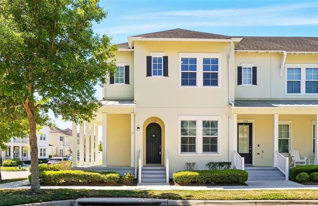 Here's your opportunity to own a rare end-unit townhome in Celebration's Spring Lake, on 1370 Kiawah Street. This beautiful David Weekley “The Dinsdale” floor plan features an open-concept first floor, private office/den, half bath downstairs, and abundant natural light. The kitchen features stainless steel appliances, cooktop with Stainless Steel vent hood & appliances, granite countertops, dark, modern cabinetry and pendant lighting above a spacious island. The kitchen opens up to the living and dining area, and the tile flooring makes it all light and bright and open. You will also love the outdoor space off of the dining area, the small courtyard gives you room up for patio furniture is complete with brick pavers.The owner's retreat offers a walk-in shower, dual sinks, and a generous walk-in closet. Upstairs, you will also find a loft area that adds extra living space, the second bedroom and bathroom with tub. Additional highlights include a wrap-around front porch, upgraded front entry door, and attached to car garage. This home is perfect for those seeking a low-maintenance home. Enjoy the unique lifestyle in the town Disney built, featuring a world-renowned downtown, scenic nature trails, community pools, and year-round events. Conveniently located just 10 minutes from Disney World's main gate and 30 minutes from Orlando International Airport, this property offers both luxury and accessibility. Living in Spring Lake Celebration also allows you access to the Spring Lake gym and community pool. You will also enjoy all the nature trails that connect to the Spring Lake area and throughout Celebration.