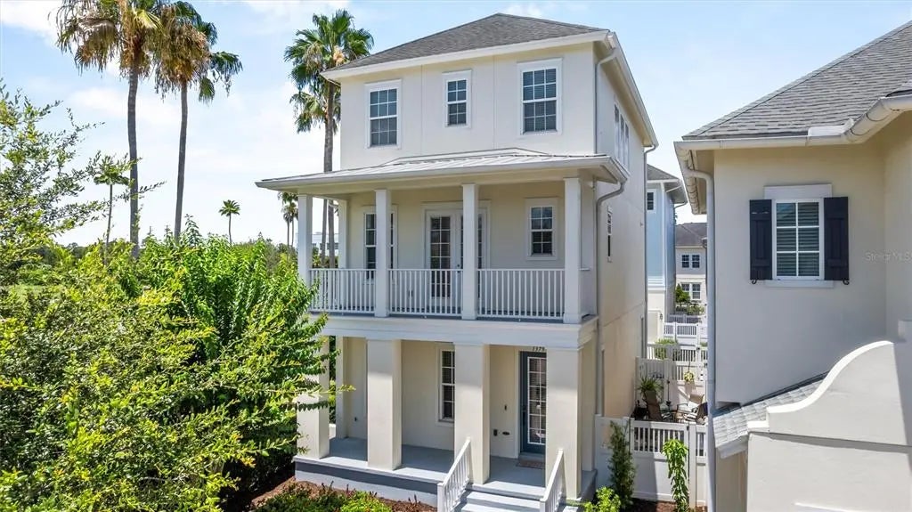 This tastefully designed Villa is situated on a corner lot in Celebration's popular Spring Lake. Designed and built in 2016, the interior modern amenities include: Wood floors on the first level with a Home Office and Full Bathroom. (Note the design photos that show how easily this area can be converted into a first floor Bedroom with a full bath!). The Handsome wood staircase leads to the main floor Open Living Area and Kitchen, ball with durable and attractive wood flooring. A convenient Desk with cabinets is adjacent to the Kitchen/Dining Area. Abundant windows allow for a Light and Bright atmosphere. A French door leads to an Amazing Large (11’X21') covered Porch - perfect for watching Space Launches. A set of Double French Doors leads to another large, covered porch with balustrade and a nice view. (Note there is a large First Floor covered Porch too, to chat with neighbors). The fully equipped Kitchen boasts all that is needed for a gourmet chef or casual dining at the huge Center Island; able to seat 4-5 guests. There is a Pantry and an amazing amount of Storage that has been added under the center Island, and glass-doored cabinets above the white 42" upper cabinets to show off collectibles. This entirely Open 2nd level is versatile for any furniture placement you desire! A Powder Room is conveniently located adjacent to this area. The staircase to the top level provides access to the Primary Ensuite, again, with numerous windows and views of the area. The Primary bath has double vanities, a garden tub and separate walk-in shower. A Laundry Room is located on this Bedroom Level for convenience. A Second Large Bedroom, with ensuite bath is perfect for family or guests. Energy Efficient features a Triple Zoned AC System! Parking Karma is provided with an oversized Two Car Garage PLUS a covered Carport for an oversized vehicle or 2 additional vehicles! The Spring Lake Community is known for its miles of lighted Walking/Biking Trails that connect to all areas of Celebration. Beautiful vistas of ponds and conservation are enjoyed by all. The Private to Celebration Residents Spring Lake Resort Pool, State-of- the-Art Fitness Center and Picnic area are all just steps away from this home. Note that the new Celebration Point Shopping Center, just minutes down the road, boasts a Super PUBLIX Supermarket, WALGREENS Pharmacy, Doctors offices, Boutique shops and casual Dining Options! This Desirable Home, in this Location and at this Price - The Magical Town of Celebration is Priceless!